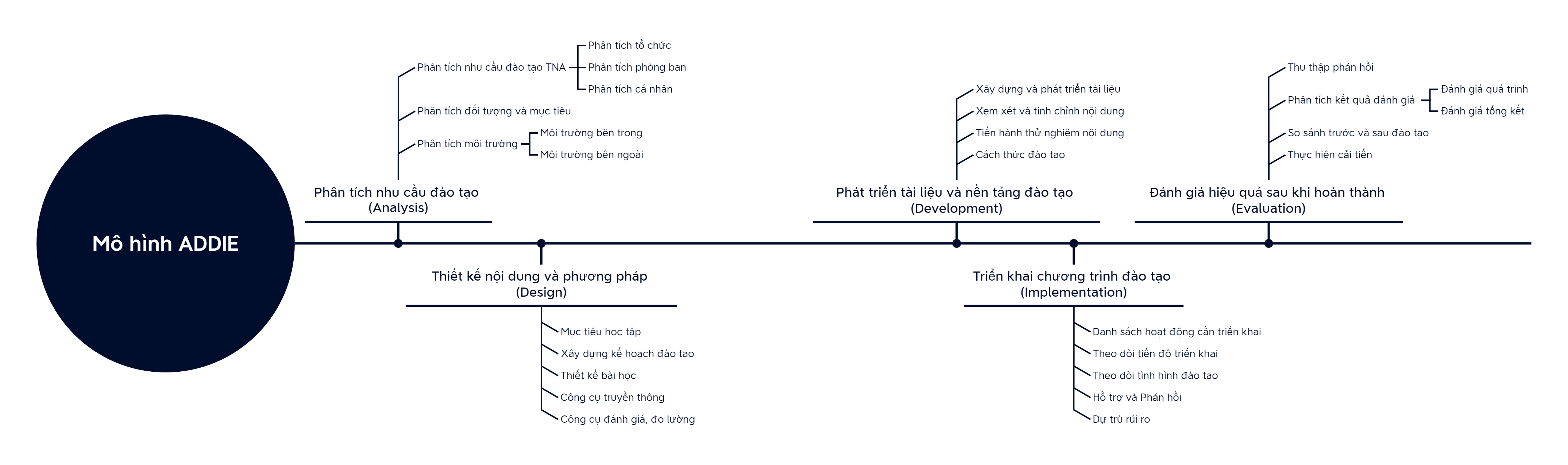 # Mô hình ADDIE (Analysis, Design, Development, Implementation, Evaluation) là một phương pháp thiết kế và phát triển nội dung đào tạo hiệu quả, bao gồm các giai đoạn: