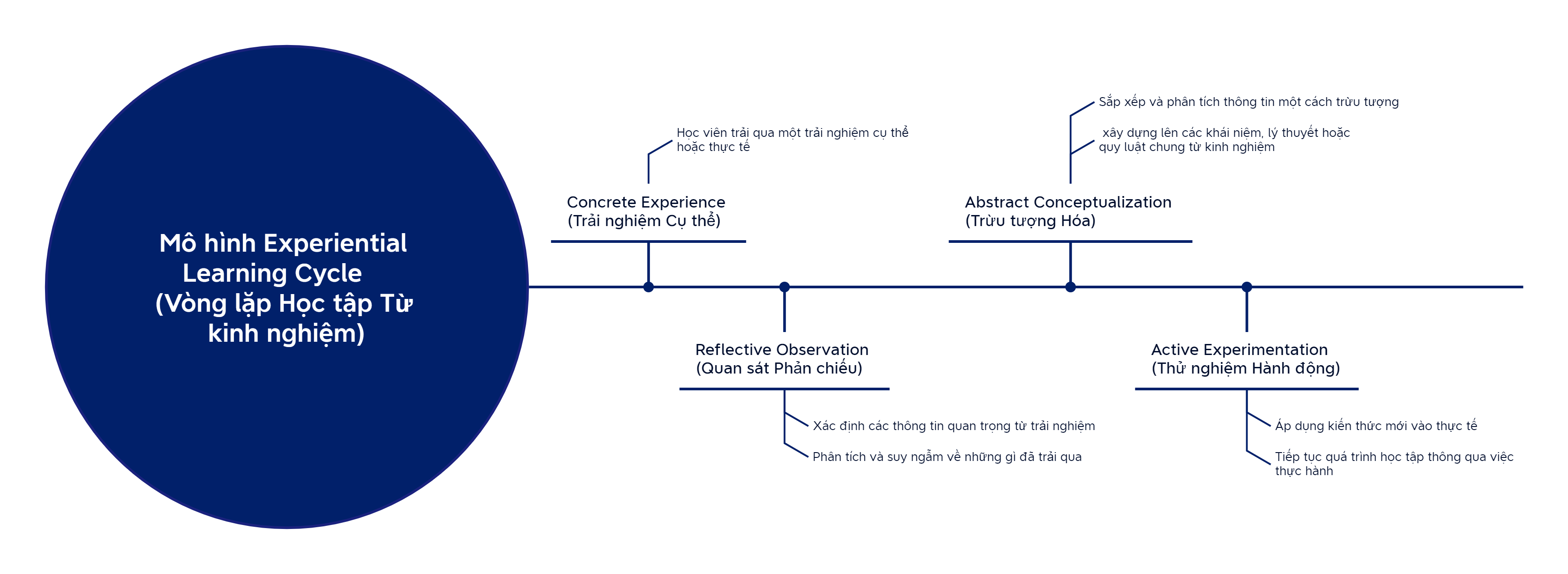 # Mô hình Experiential Learning Cycle (Vòng lặp Học tập Từ kinh nghiệm) của David Kolb là một trong những mô hình đào tạo phổ biến, tập trung vào quá trình học thông qua trải nghiệm và bao gồm bốn giai đoạn chính: