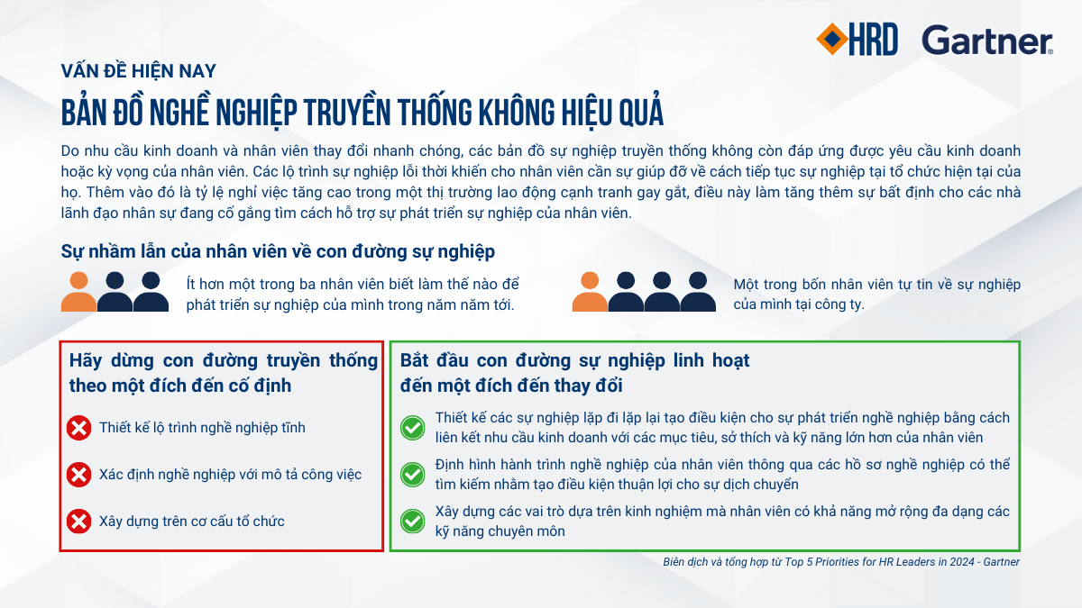Cuối cùng, Báo cáo nhấn mạnh tầm quan trọng của việc quản lý nghề nghiệp và luân chuyển nội bộ. Do nhu cầu của nhân viên và doanh nghiệp thay đổi nhanh chóng, các giám đốc nhân sự cần phải áp dụng các phương pháp tiếp cận linh hoạt và thích ứng để hỗ trợ sự phát triển nghề nghiệp của nhân viên, giúp họ tự tin hơn và nâng cao hiệu suất làm việc.