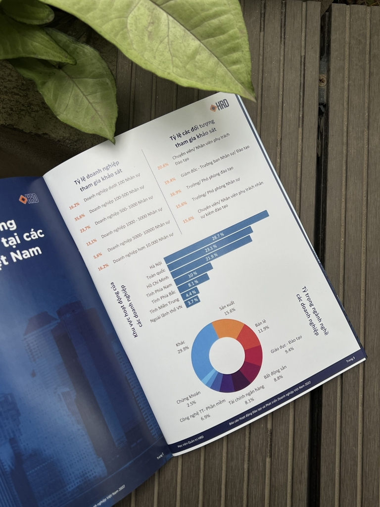 Với sự tham gia khảo sát hơn 200 Doanh nghiệp đa dạng quy mô & lĩnh vực trên toàn quốc, Báo cáo Hoạt động Đào tạo & Phát triển Doanh nghiệp Việt Nam 2022 sẽ cung cấp bức tranh toàn cảnh về Đào tạo & Phát triển Doanh nghiệp Việt Nam. Báo cáo chia sẻ thực tiễn vận hành hoạt động đào tạo của rất nhiều lĩnh vực như Công nghệ, Sản xuất, FMCG, Tài chính ngân hàng: Tỷ trọng nhân sự phụ trách đào tạo, Tỷ trọng ngân sách đào tạo/ tổng doanh thu,...cũng như chia sẻ thực trạng & giải pháp phát triển văn hóa học tập tại các tổ chức. Bên cạnh đó là Góc nhìn thực tiễn từ những chuyên gia, nhà quản lý hoạt động L&D tại các tổ chức hàng đầu về Xu hướng đào tạo tại các doanh nghiệp tại Việt Nam & Quốc tế.