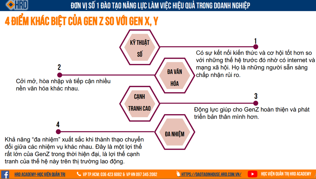 Trên đây là những đặc điểm của thế hệ GenZ tại thị trường lao động hiện nay và gợi ý một số bí kíp đào tạo thế hệ này. Đào tạo nhân sự Gen Z là bài toán khó cho những nhà quản lý nhân sự bởi Gen Z khác hoàn toàn so với các thế hệ lực lượng lao động Gen X, Y.
