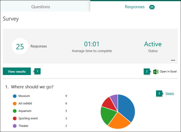 Với Microsoft Forms, thầy cô có thể tạo các khảo sát, tạo quiz tương tác, mời những người khác phản hồi nó bằng cách dùng hầu như bất kỳ trình duyệt web nào hoặc thiết bị di động nào. Có thể xem kết quả theo thời gian thực khi chúng được gửi đi, sử dụng phân tích tích hợp sẵn để đánh giá phản hồi và xuất kết quả với Excel để phân tích bổ sung. Microsoft Form cũng dễ dàng được tích hợp vào Slide Powerpoint của thầy cô (tuy nhiên thầy cô phải sử dụng Office 365).