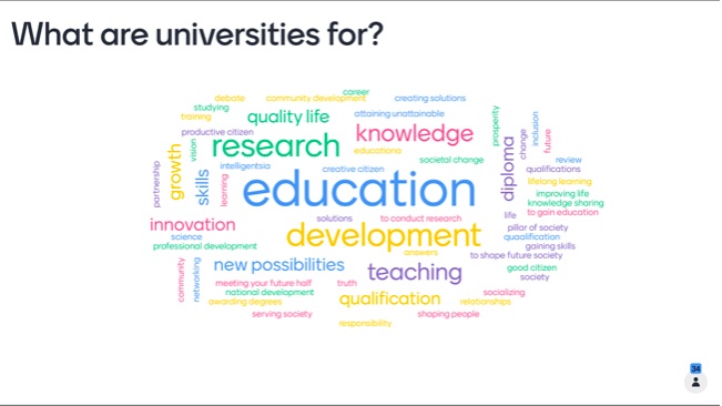 Thầy cô có thể sử dụng Mentimeter để tạo slideshow từ nhiều lựa chọn về hình ảnh, đáp án mở… Học sinh có thể trả lời câu hỏi. Một Slide thu thập ý kiến học viên về 1 chủ đề, nhanh chóng được trình chiếu đẹp mắt.