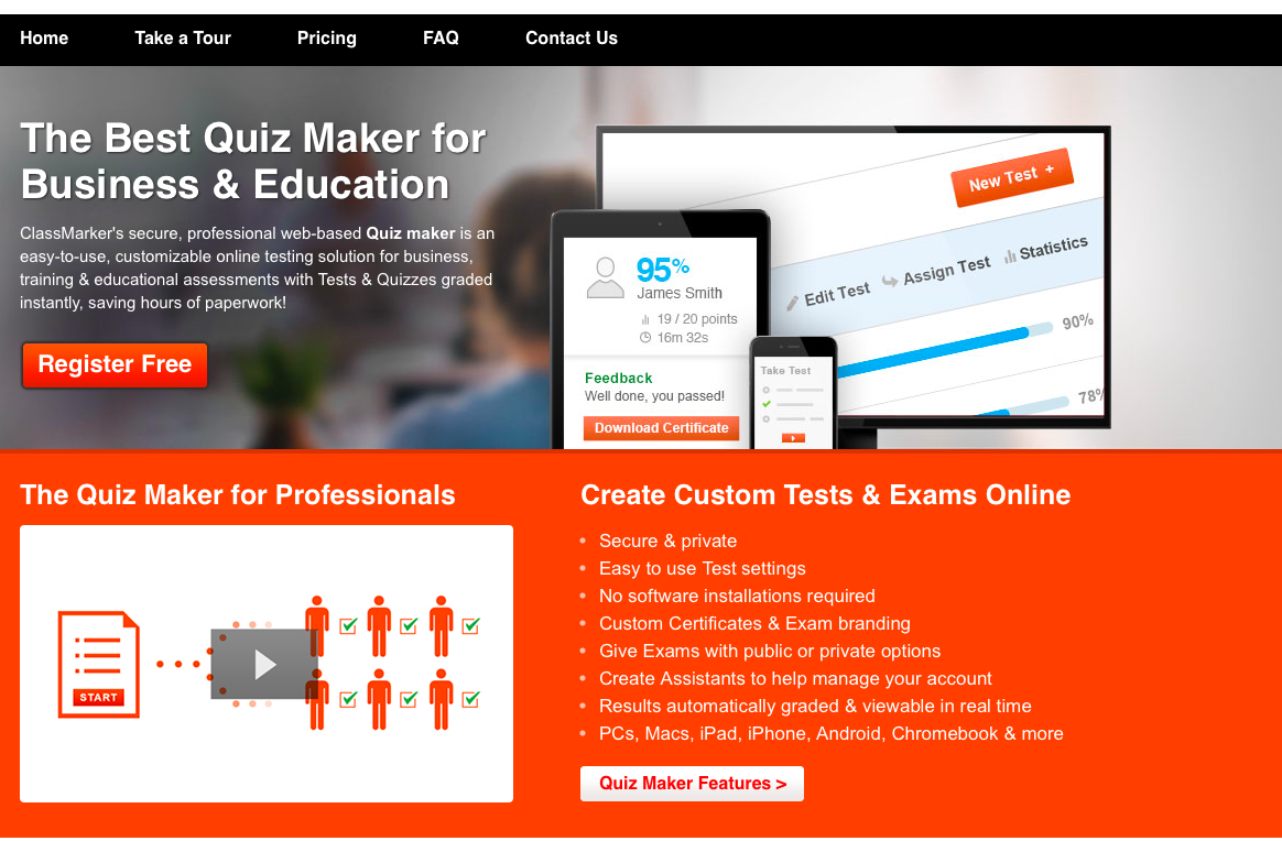 Flexiquiz cung cấp nền tảng tạo bài quiz online đơn giản với các lựa chọn như chọn nhiều đáp án đúng, chọn hình ảnh, điền vào chỗ trống… Bạn có thể thêm hình ảnh, video vào câu hỏi cũng như đặt số điểm cho từng câu hỏi. Tài khoản miễn phí giới hạn số lượng quiz bạn có thể tạo cũng như số lượng câu hỏi, đáp án cho mỗi bài quiz.