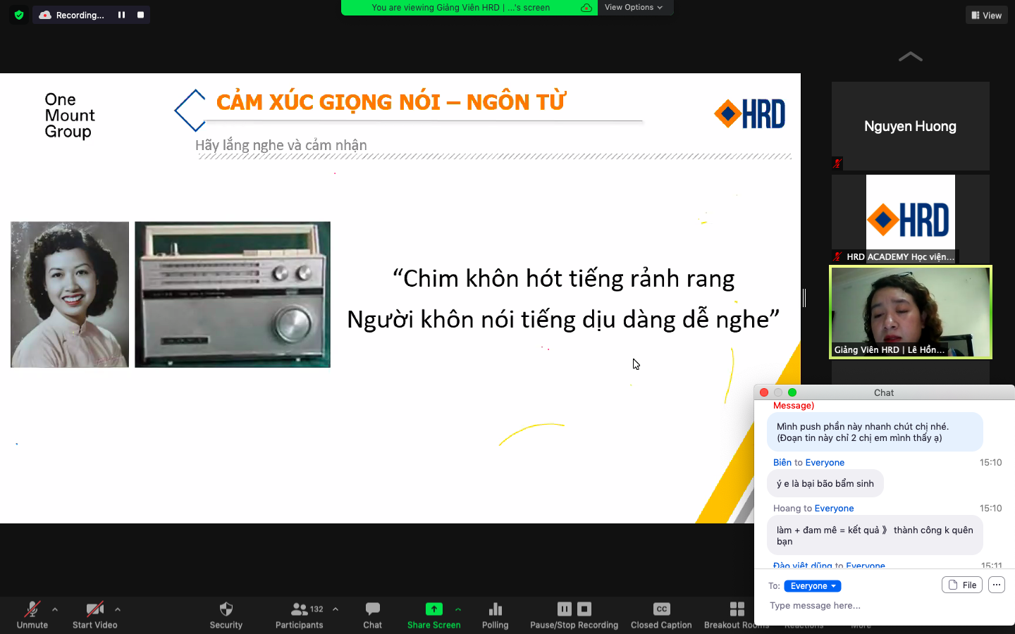 Chương trình với 3 phần chính được đào tạo với hình thức online, học viên đã được trang bị những kiến thức từ cơ bản đến nâng cao về kỹ năng bán hàng. Đi từ mindset luôn phải hướng đến khách hàng, các học viên đã hình dung rõ điểm mấu chốt của bán hàng qua điện thoại là gì. Với lợi thế là lớp học online, không còn sự ngại ngùng, các học viên trao đổi, tương tác và thảo luận rất hăng say, nhiệt tình qua box chat.
