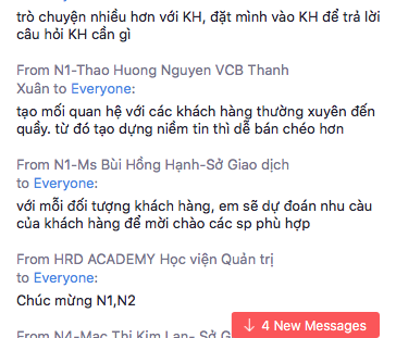 Kết thúc chương trình, chị Mạc Thị Kim Lan có chia sẻ:" Cảm ơn Trường và cảm ơn HRD đã mang đến khóa học bổ ích này. Có những cái làm cả chục năm có lẻ thì càng cần học. Học online vẫn cứ là ok, rất mong gặp lại thầy và HRD trong những chương trình tiếp theo."