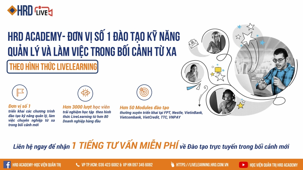 Học viện quản trị HRD Academy - Đơn vị số 1 đào tạo kỹ năng quản lý và làm việc trong bối cảnh từ xa theo hình thức LiveLearning .