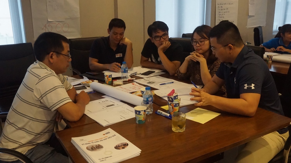 Dưới sự dẫn dắt của Chuyên gia HRD Academy trong chương trình đào tạo "Kỹ năng tổ chức hội họp hiệu quả", hơn 30 học viên từ các phòng ban khác nhau của công ty đã thấu hiểu được những vai trò, nền tảng ảnh hưởng đến việc tổ chức cuộc họp hiệu quả, ứng dụng những phương pháp hữu hiệu để kiểm soát cuộc họp và giải quyết các tình huống thực tế.