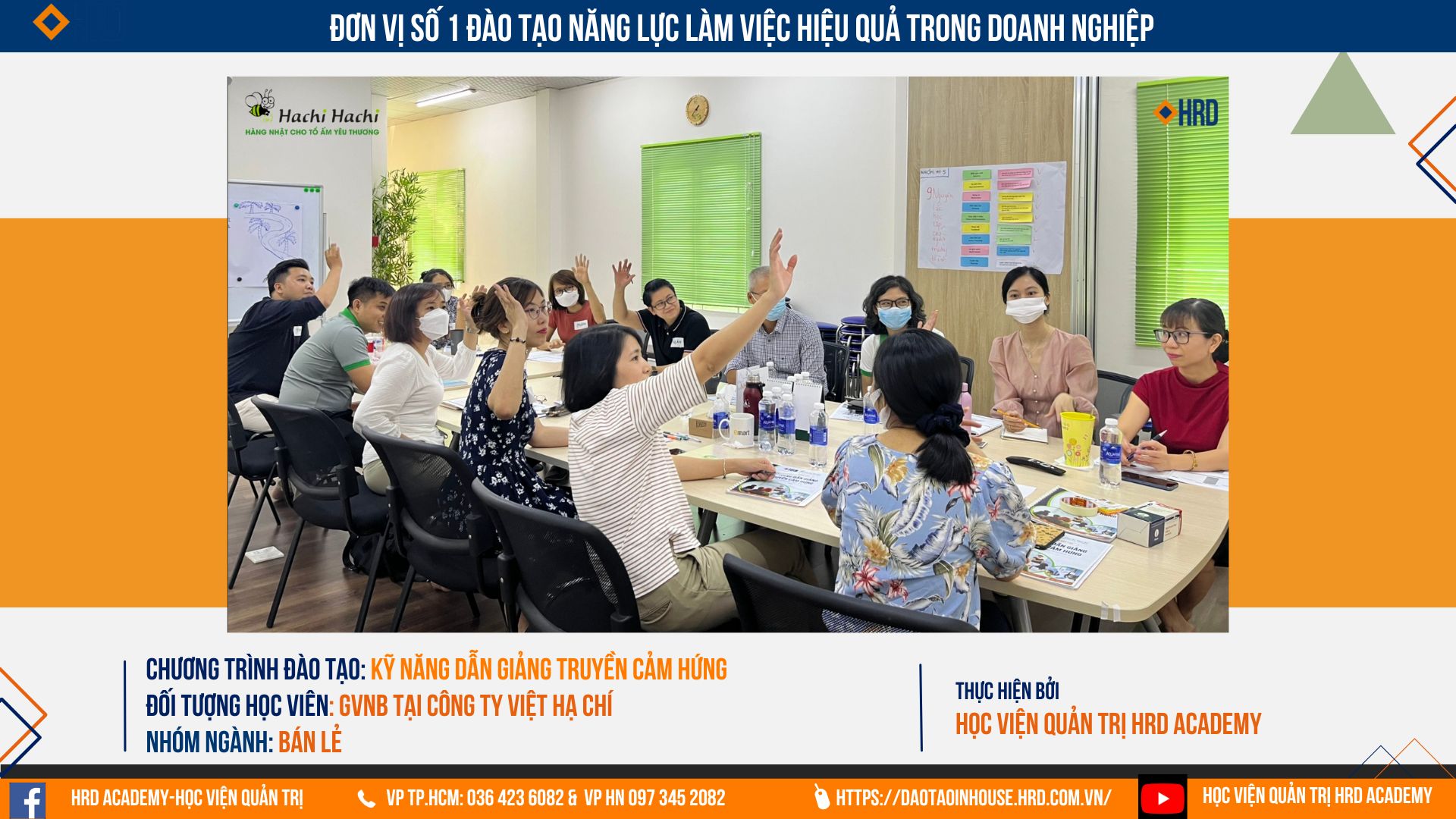 HRD ACADEMY tin chắc rằng qua 2 ngày cùng nhau chia sẻ, thực hành về Kỹ năng giảng. dạy truyền cảm hứng, các Anh/ Chị học viên đã bỏ túi được thật nhiều kiến thức bổ ích và có thể áp dụng ngay tại Hachi Hachi.