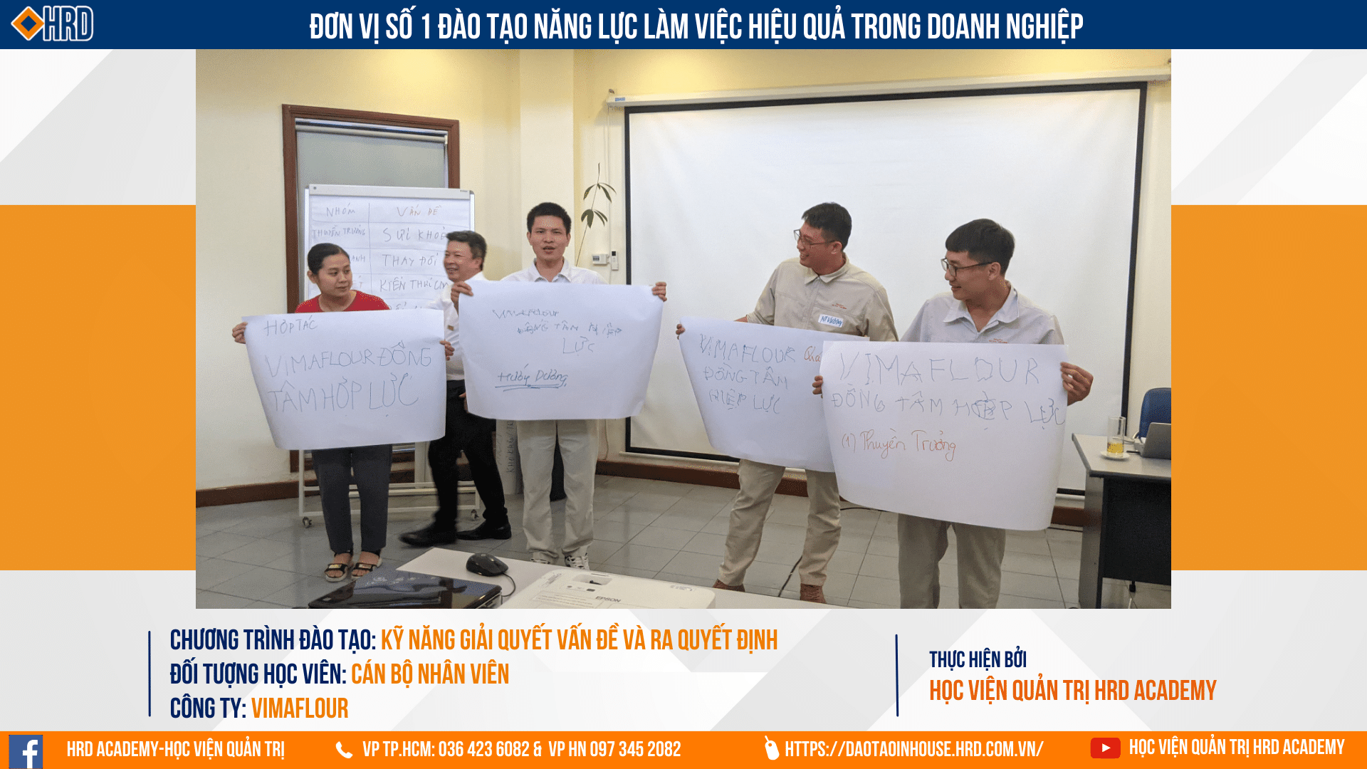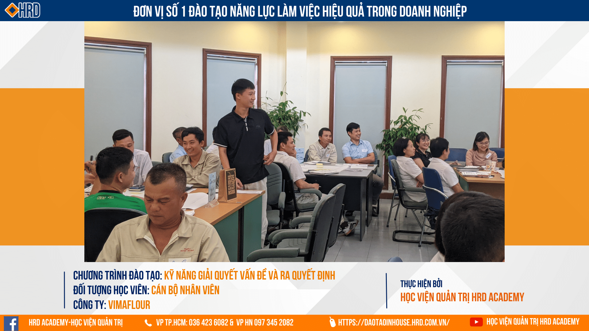 Chương trình "Kỹ năng Giải quyết vấn đề & Ra quyết định" của HRD Academy đã được thiết kế dành cho Công ty TNHH Sản xuất Bột mỳ Vimaflour. Chương trình đem tới các nội dung về: