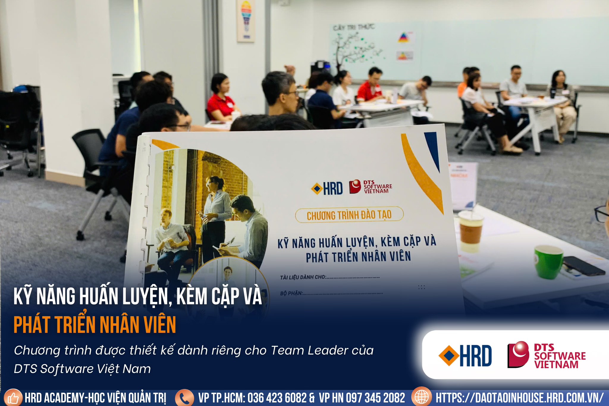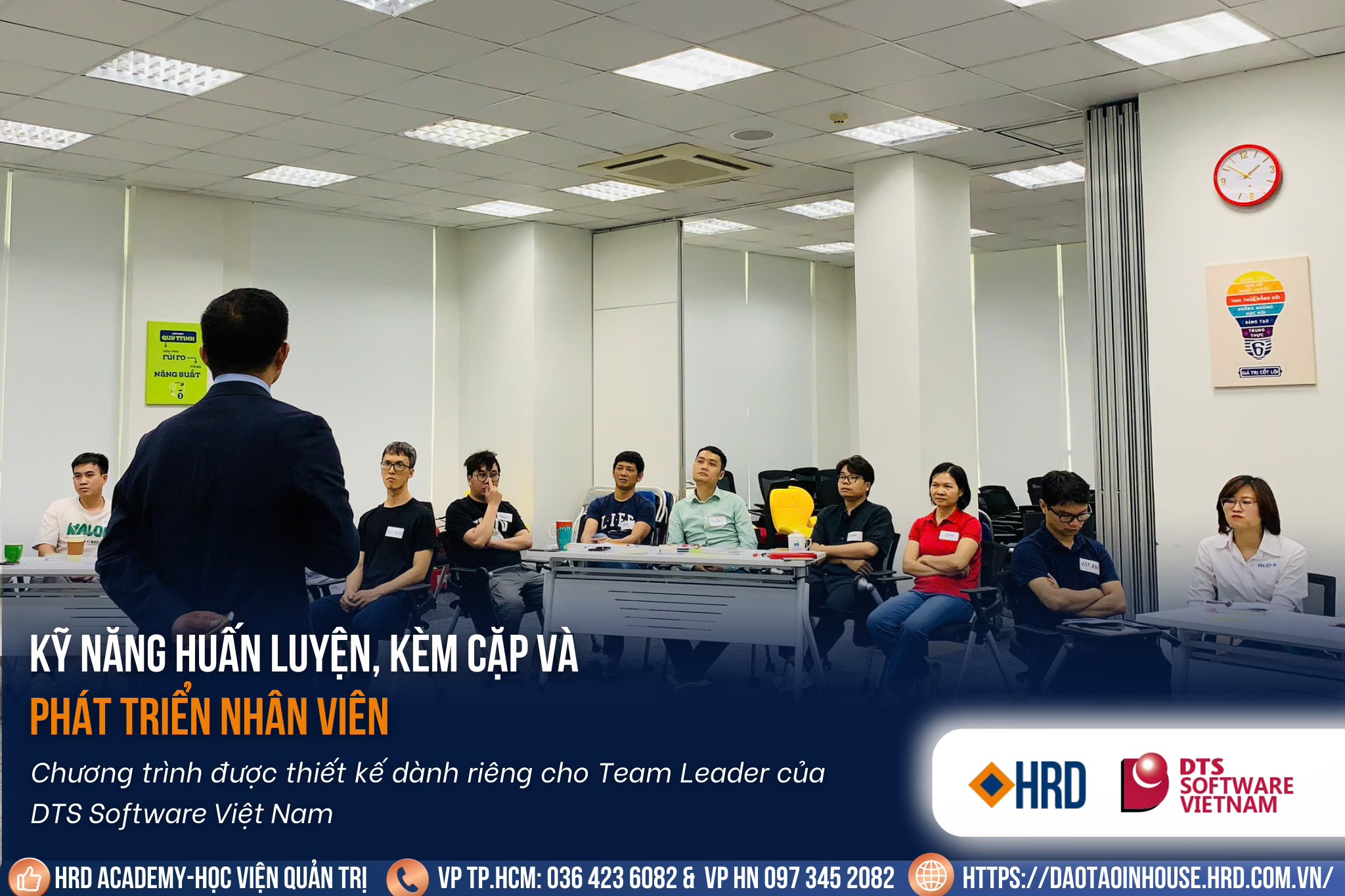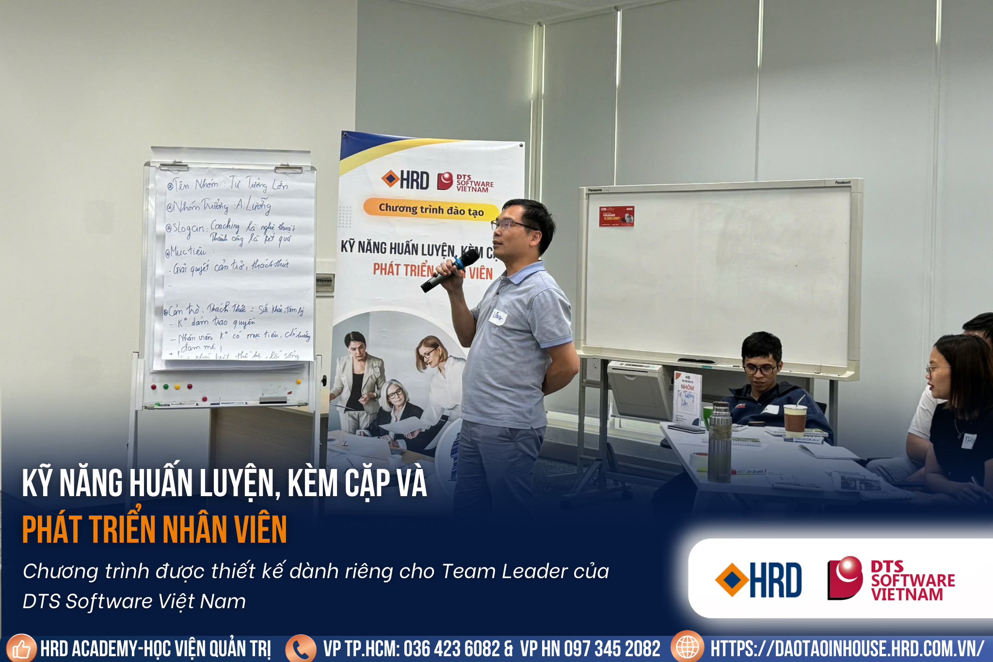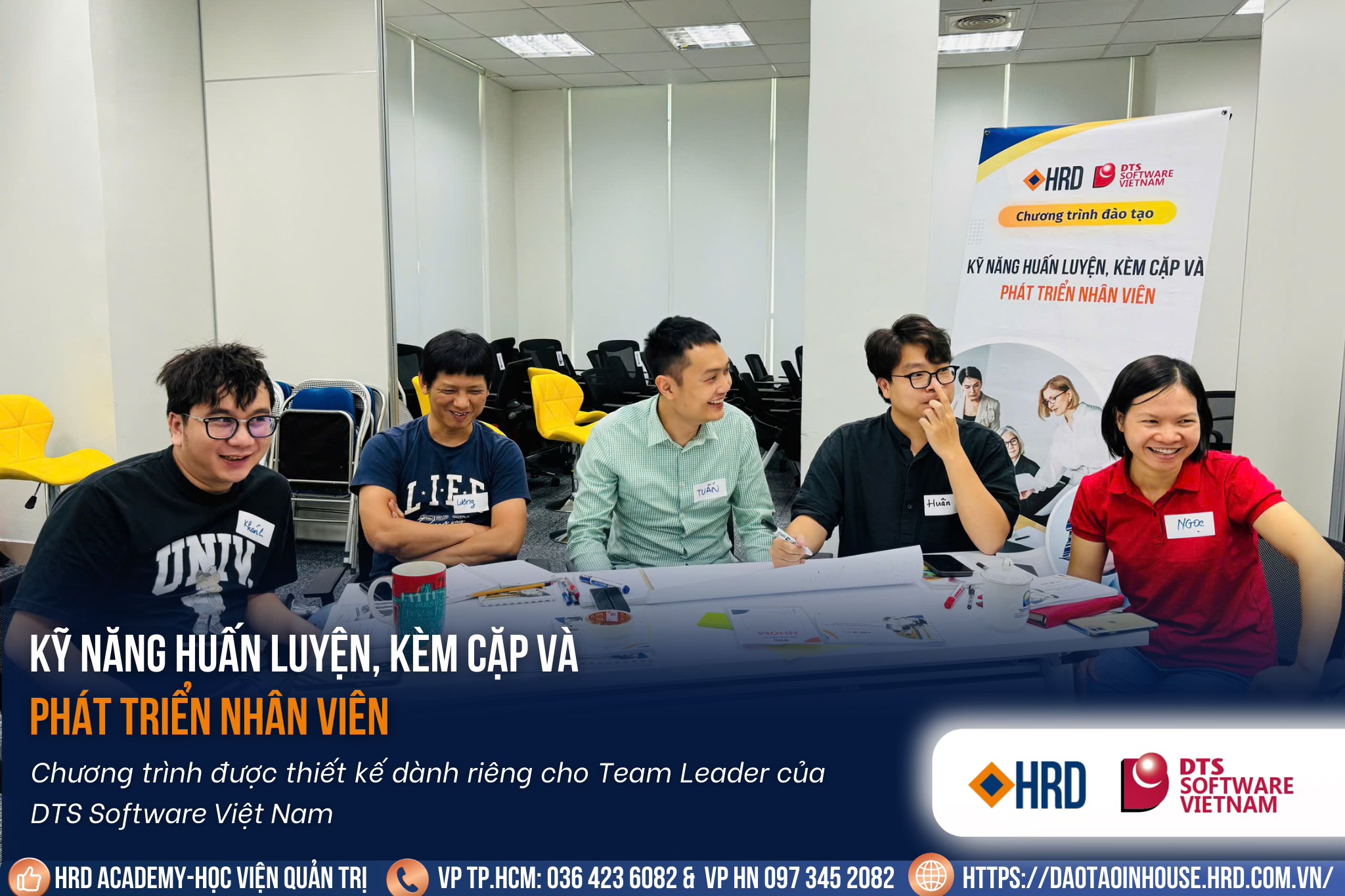 Chương trình đào tạo “Kỹ năng huấn luyện, kèm cặp và phát triển nhân viên" dành cho DTS Software được HRD Academy thiết kế nhằm phát triển năng lực lãnh đạo nền tảng của các cấp quản lý tuyến đầu, chuẩn hoá vai trò huấn luyện viên nội bộ, giúp Team Leader không chỉ dẫn dắt bằng năng suất – mà còn bằng sự phát triển con người.