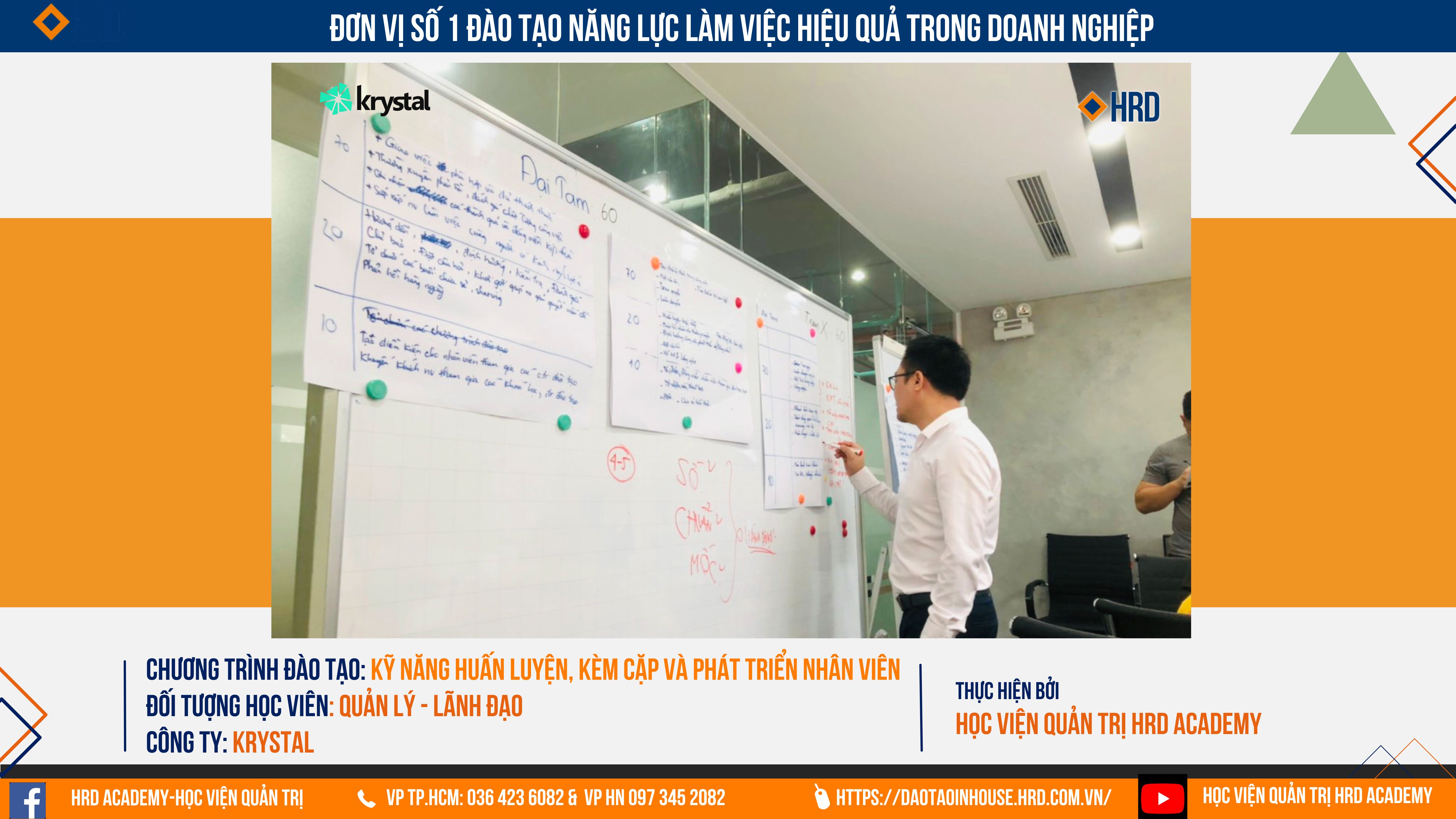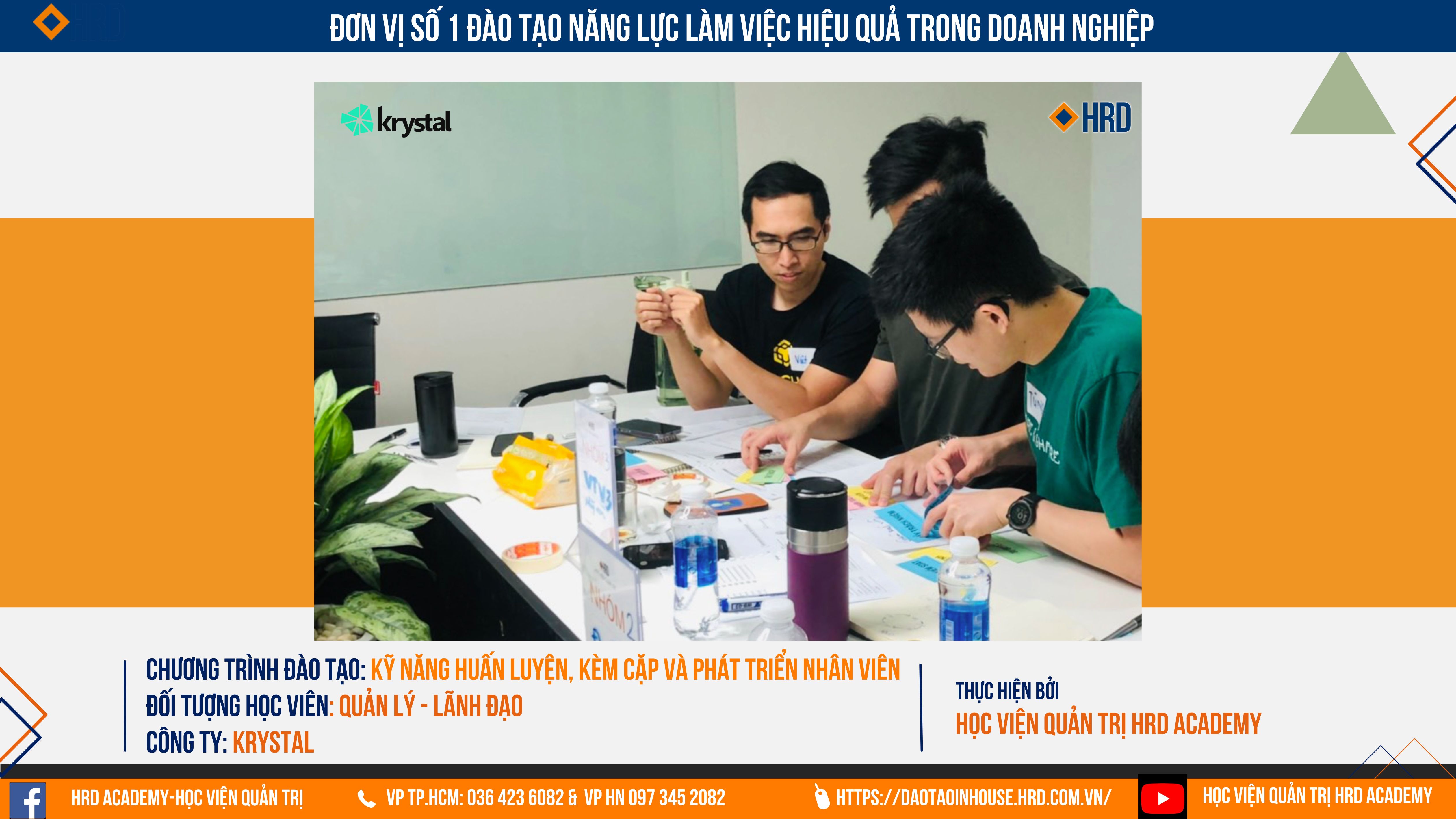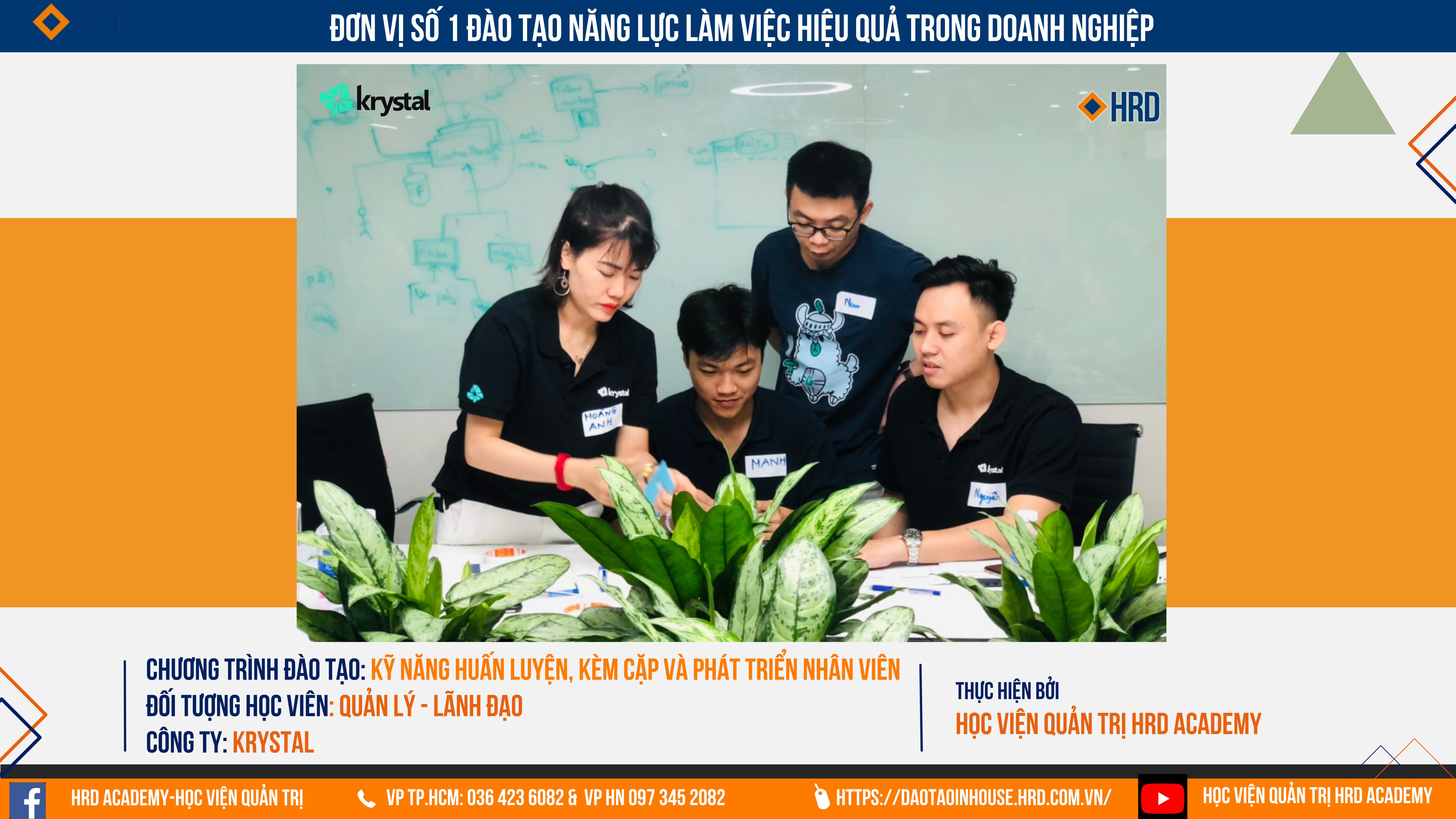 Học viện Quản trị HRD Academy đã phối hợp chặt chẽ cùng Phòng Nhân sự tại Krystal tổ chức thành côngn chương trình "KỸ NĂNG HUẤN LUYỆN, KÈM CẶP VÀ PHÁT TRIỂN NHÂN VIÊN HIỆU QUẢ" Với những nội dung vô cùng thực chiến có thể áp dụng ngay tại doanh nghiệp.