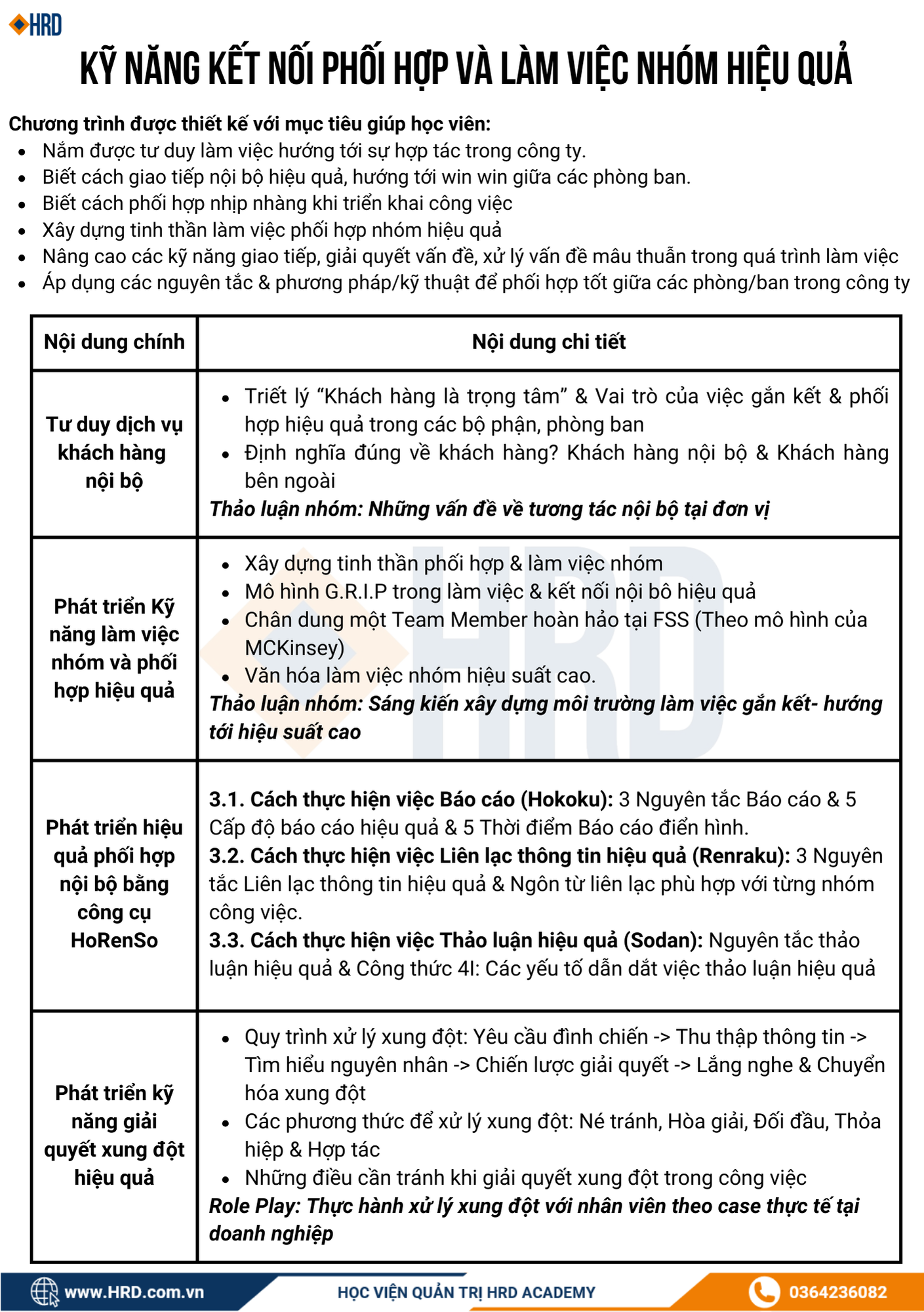 OUTLINE CHI TIẾT CHƯƠNG TRÌNH "KỸ NĂNG KẾT NỐI PHỐI HỢP VÀ LÀM VIỆC NHÓM HIỆU QUẢ"