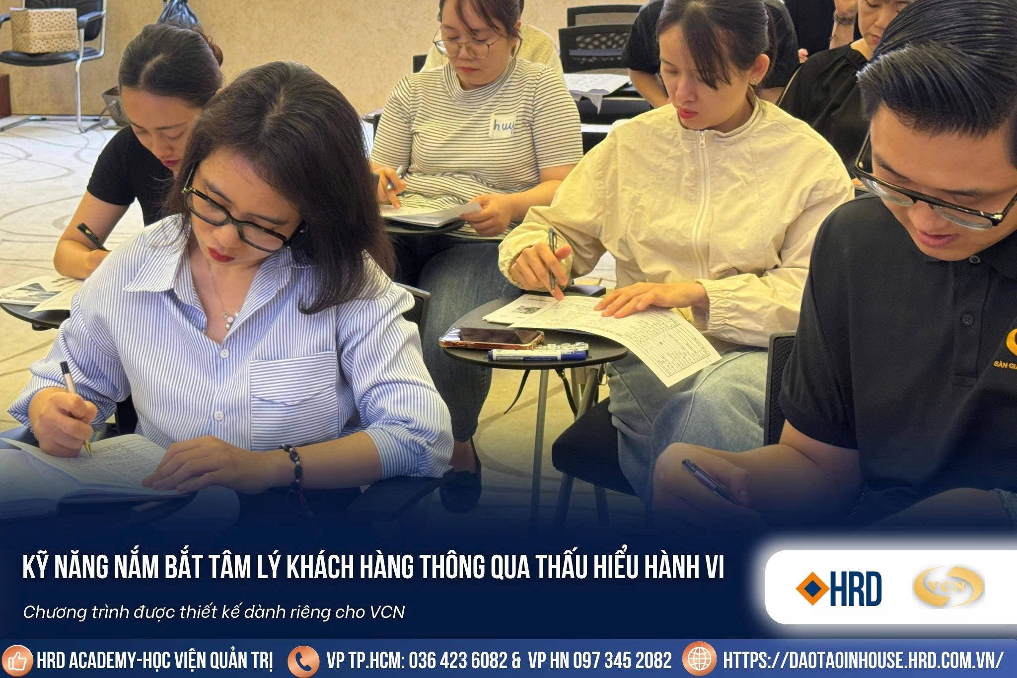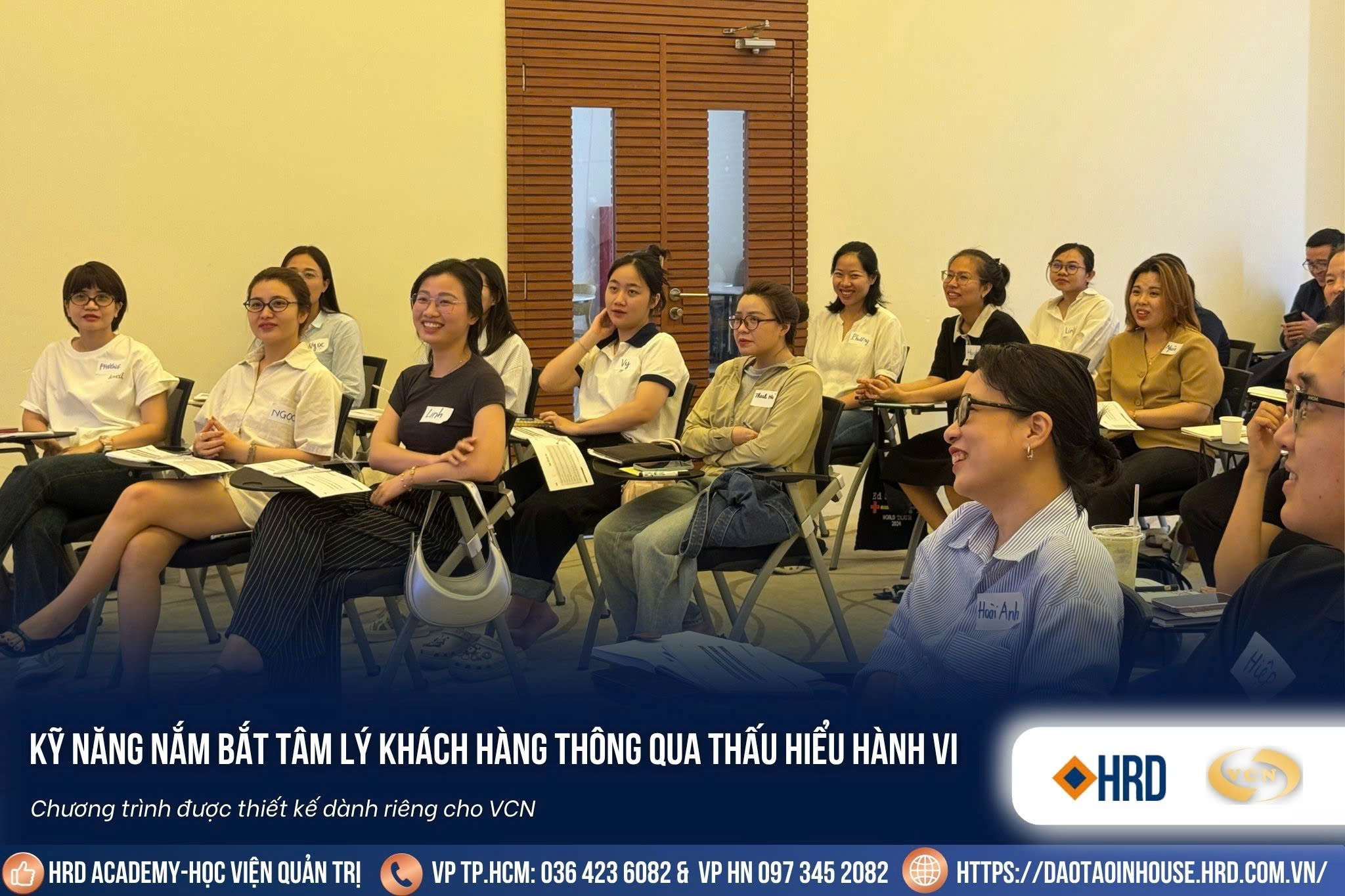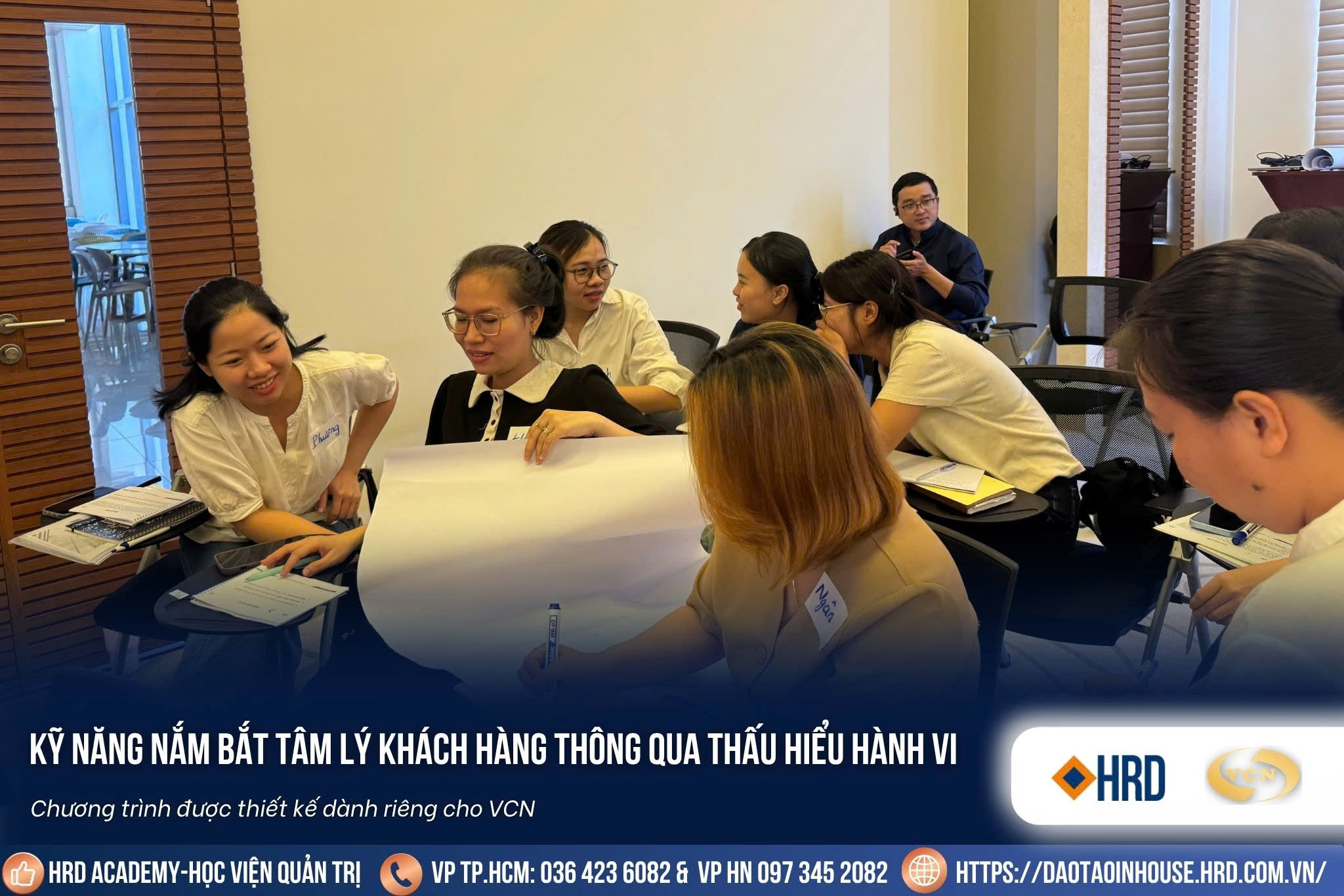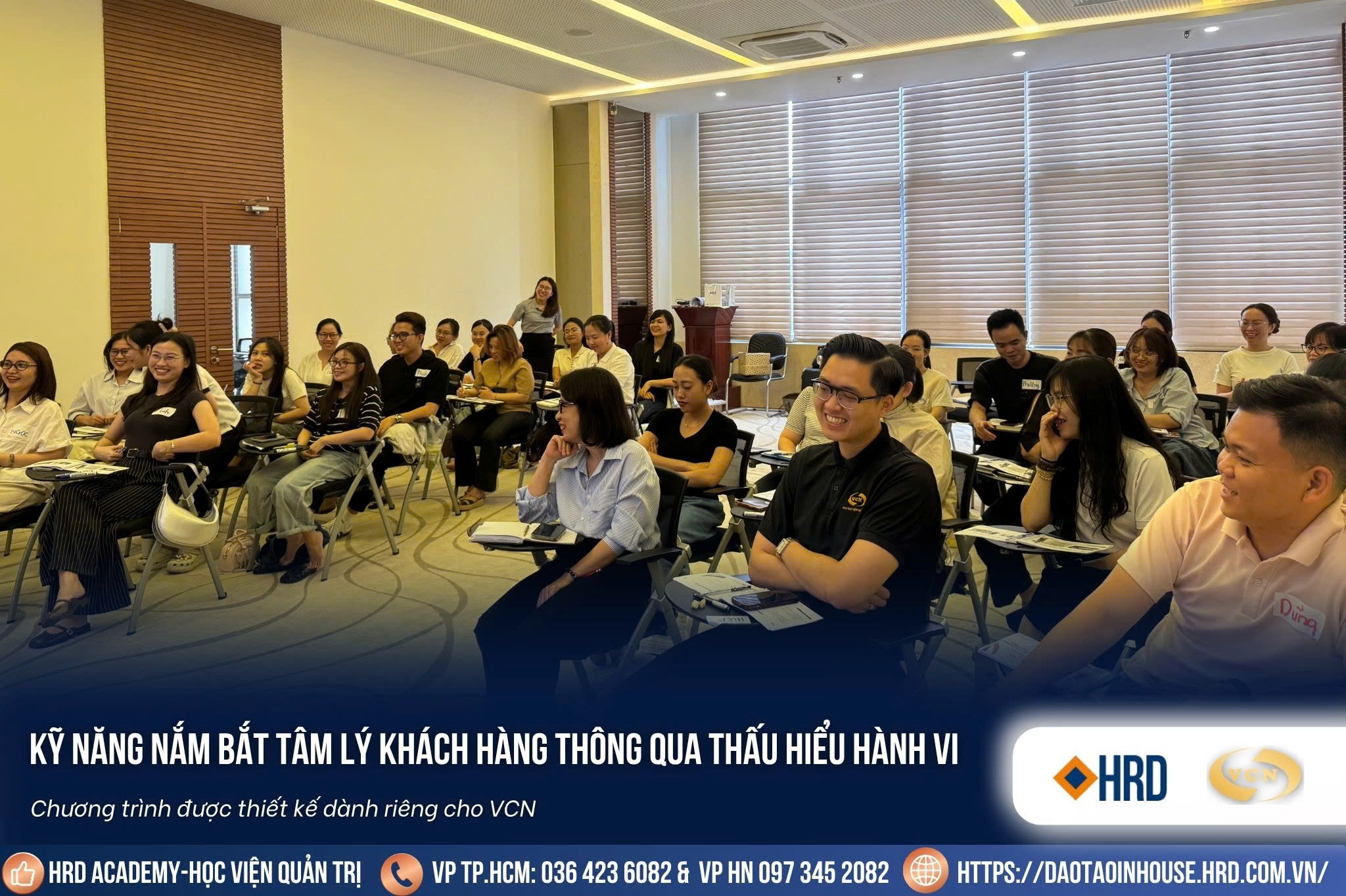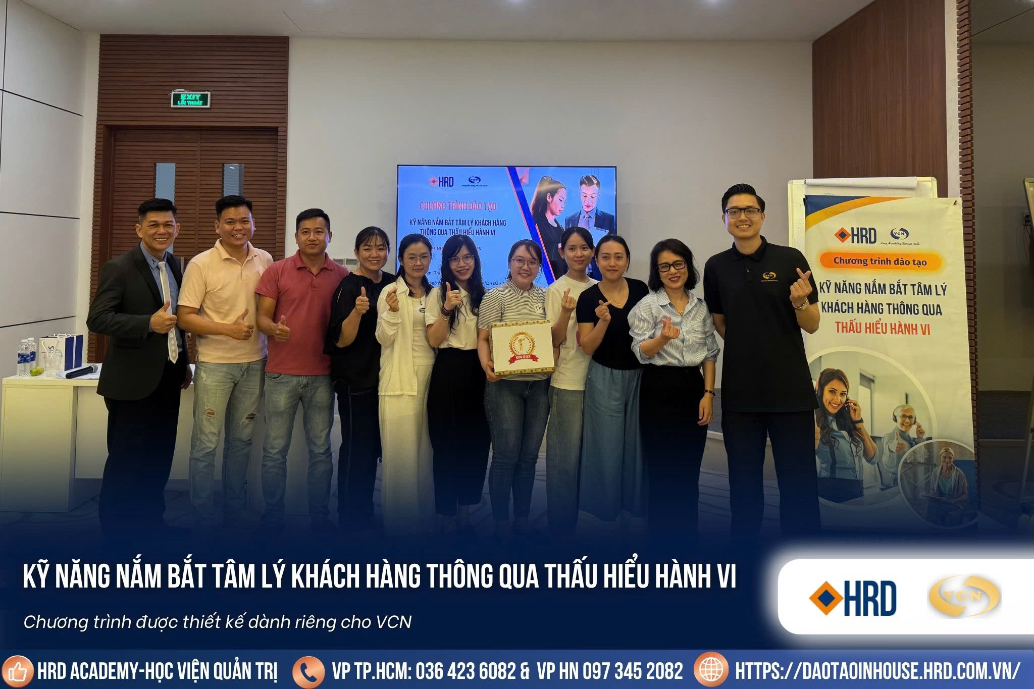 Là đơn vị đào tạo chuyên sâu về năng lực quản trị và kỹ năng nghề nghiệp, Học viện Quản trị HRD Academy tự hào đồng hành cùng VCN trong hành trình nâng cao chất lượng đội ngũ – từ cấp quản lý đến đội ngũ tuyến đầu trực tiếp làm việc với khách hàng.