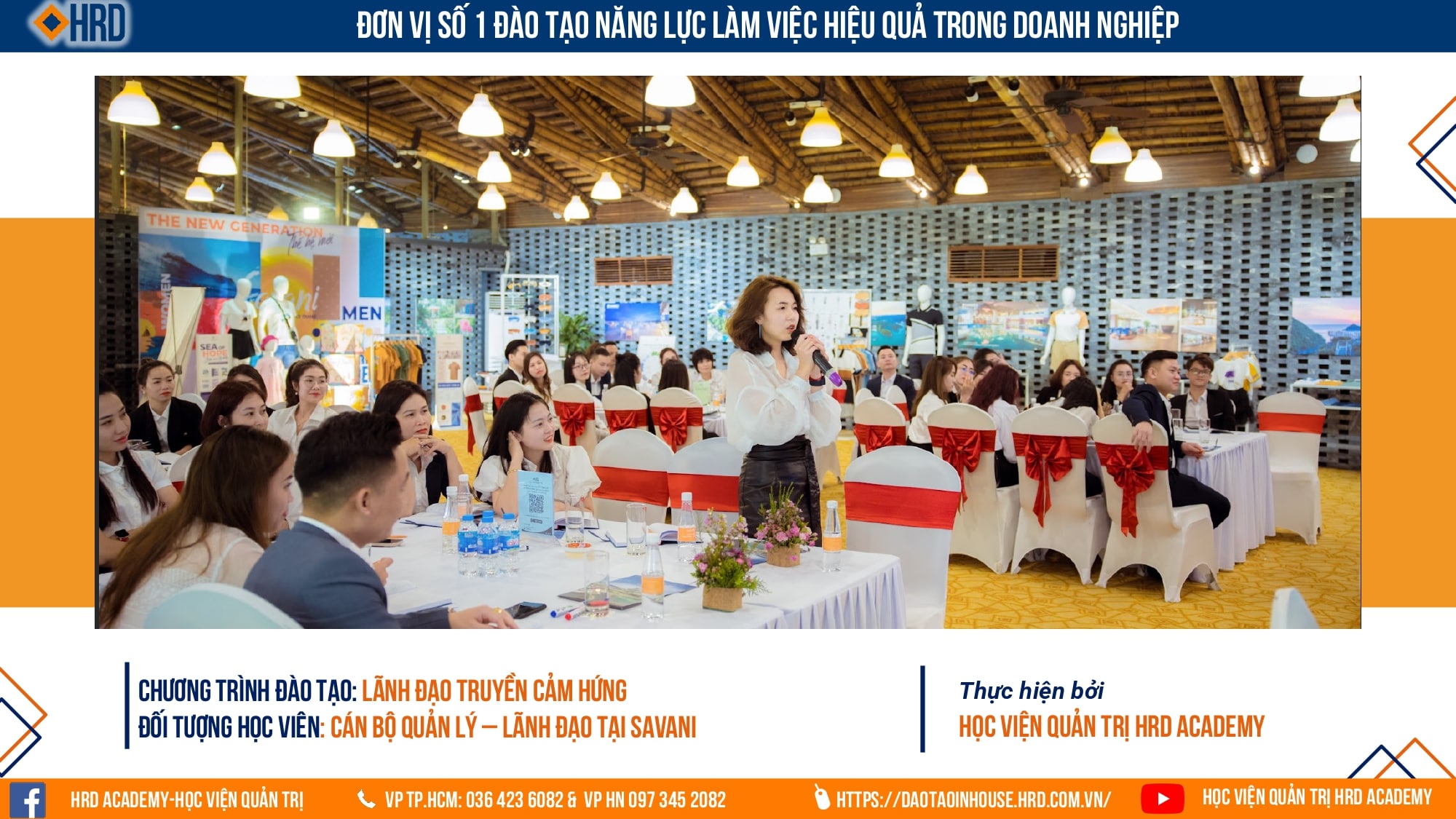 Để trả lời cho câu hỏi trên Ban Giám đốc và Phòng nhân sự tại công ty Savani - một thương hiệu thời trang hàng đầu tại Việt Nam đã quyết định kết hợp cùng HRD Academy tổ chức thành công Workshop "Lãnh đạo truyền cảm hứng" dành cho hơn 70 cán bộ Quản lý, Lãnh đạo tại công ty với mục tiêu: