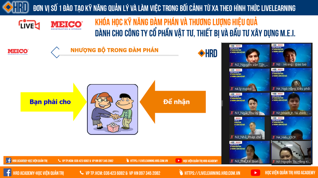 HỌC VIỆN QUẢN TRỊ HRD ACADEMY HÂN HẠNH ĐỒNG HÀNH CÙNG MEICO TRONG CHƯƠNG TRÌNH TRỰC TUYẾN “ KỸ NĂNG ĐÀM PHÁN VÀ THƯƠNG LƯỢNG HIỆU QUẢ”