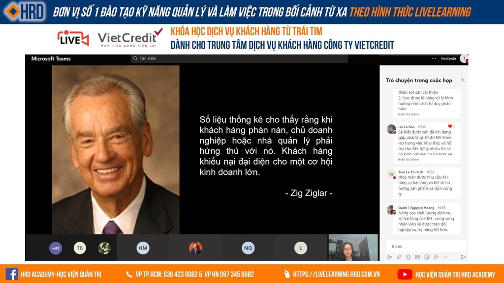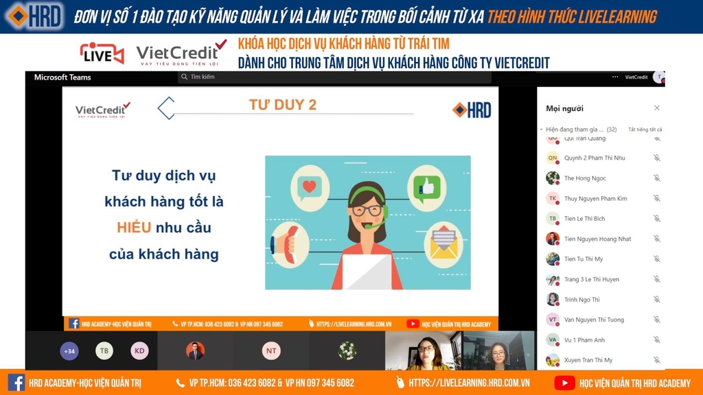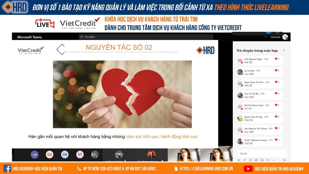 HỌC VIỆN QUẢN TRỊ HRD ACADEMY HÂN HẠNH ĐỒNG HÀNH CÙNG VIETCREDIT TRONG CHƯƠNG TRÌNH TRỰC TUYẾN “DỊCH VỤ KHÁCH HÀNG TỪ TRÁI TIM" DÀNH CHO TRUNG TÂM DỊCH VỤ KHÁCH HÀNG
