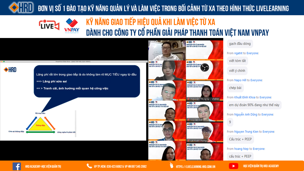 HỌC VIỆN QUẢN TRỊ HRD ACADEMY HÂN HẠNH ĐỒNG HÀNH CÙNG VNPAY TRONG CHƯƠNG TRÌNH TRỰC TUYẾN “KỸ NĂNG GIAO TIẾP HIỆU QUẢ KHI LÀM VIỆC TỪ XA”
