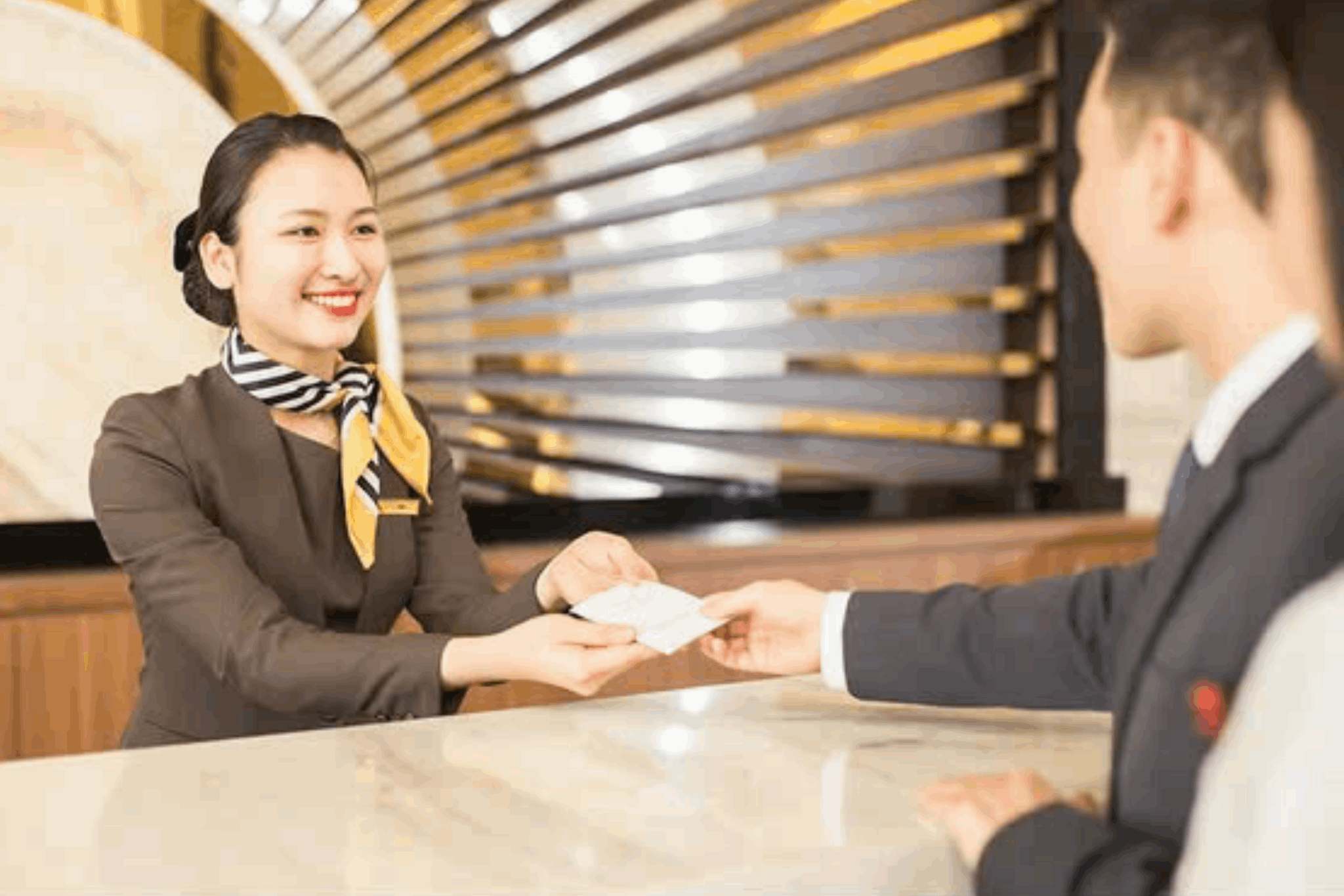 - Lên đến cửa công ty, lễ tân tiếp đón, mời ngồi, mời nước và hướng dẫn cách liên hệ hẹn gặp.