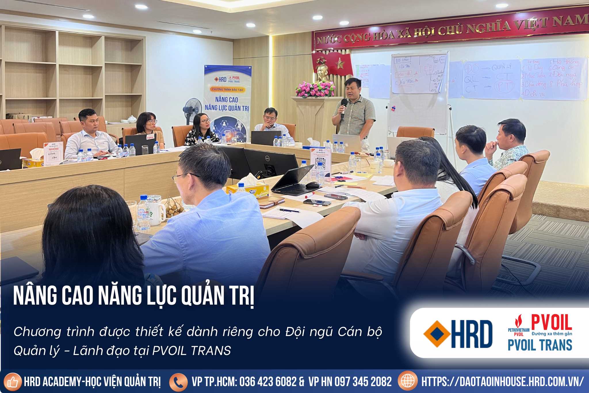 Nhằm nâng cao chất lượng quản lý, tối ưu hóa vận hành và hướng đến sự phát triển bền vững, PVOIL đã phối hợp cùng HRD Academy tổ chức chương trình đào tạo in-house “Nâng cao năng lực Quản trị”. Chương trình được thiết kế đặc biệt dành riêng cho đội ngũ quản lý của PVOIL, giúp họ nâng cao tư duy quản trị theo hướng chuyên nghiệp – hiện đại
