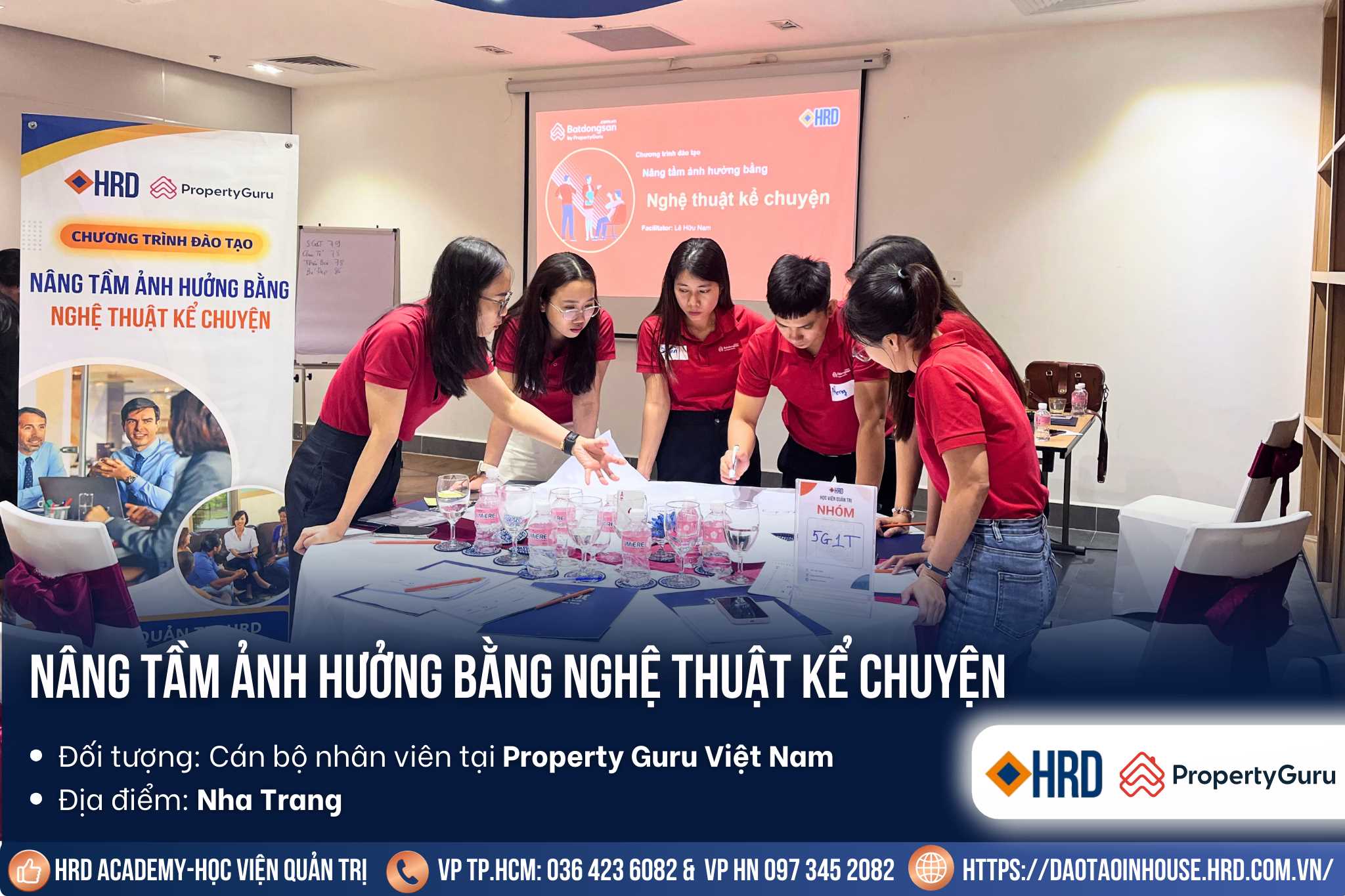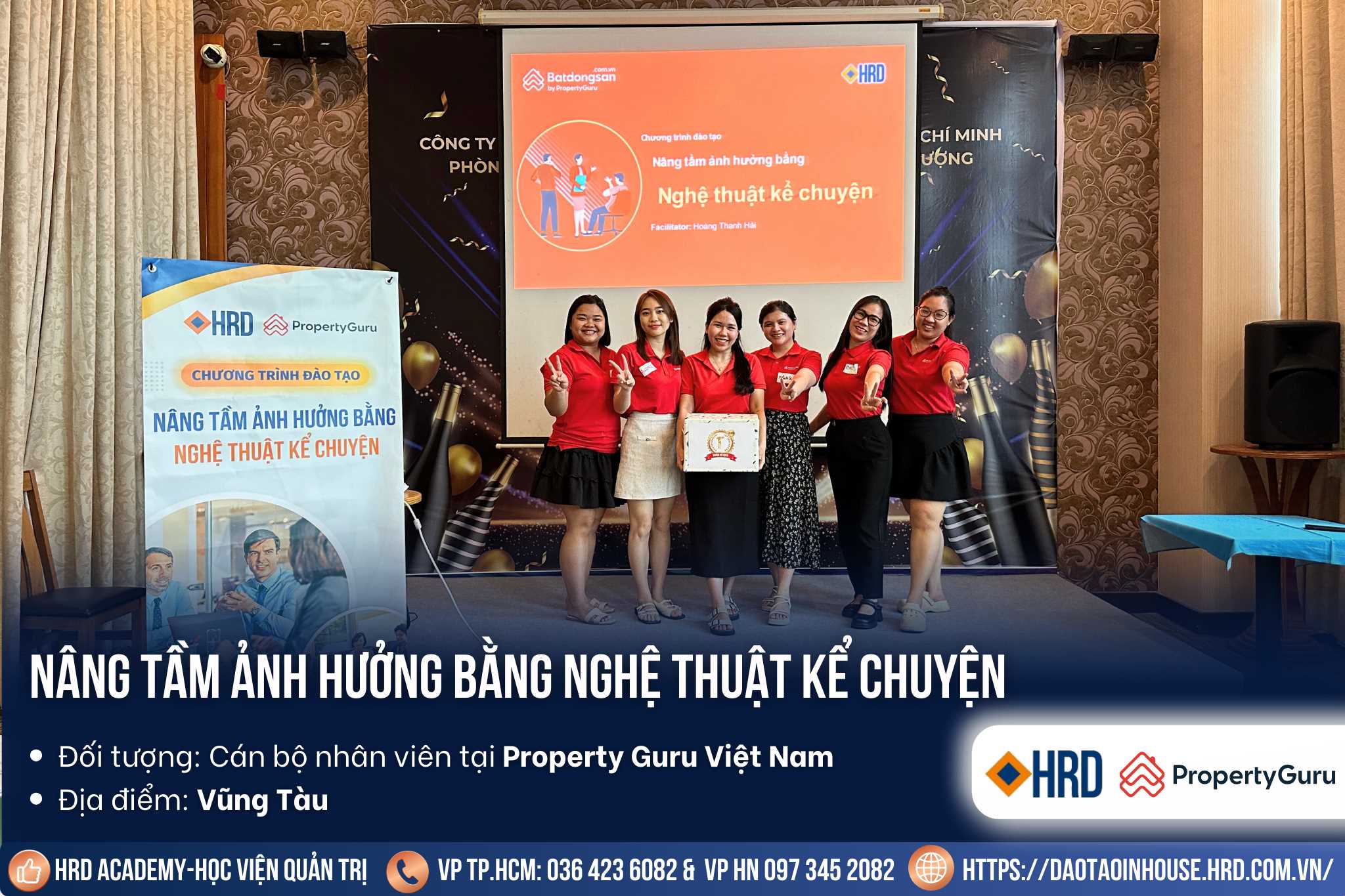 HRD Academy rất vinh dự mang đến chương trình đào tạo “Nâng tầm ảnh hưởng bằng nghệ thuật kể chuyện” cho Property Guru - Tập đoàn số 1 Châu Á về Công nghệ - Bất động sản, đồng hành cùng hơn 500 nhân viên kinh doanh trên toàn quốc thuộc 6 chi nhánh: Hà Nội, Hải Phòng, Đà Nẵng, Nha Trang, Bình Dương và Thành phố Hồ Chí Minh.