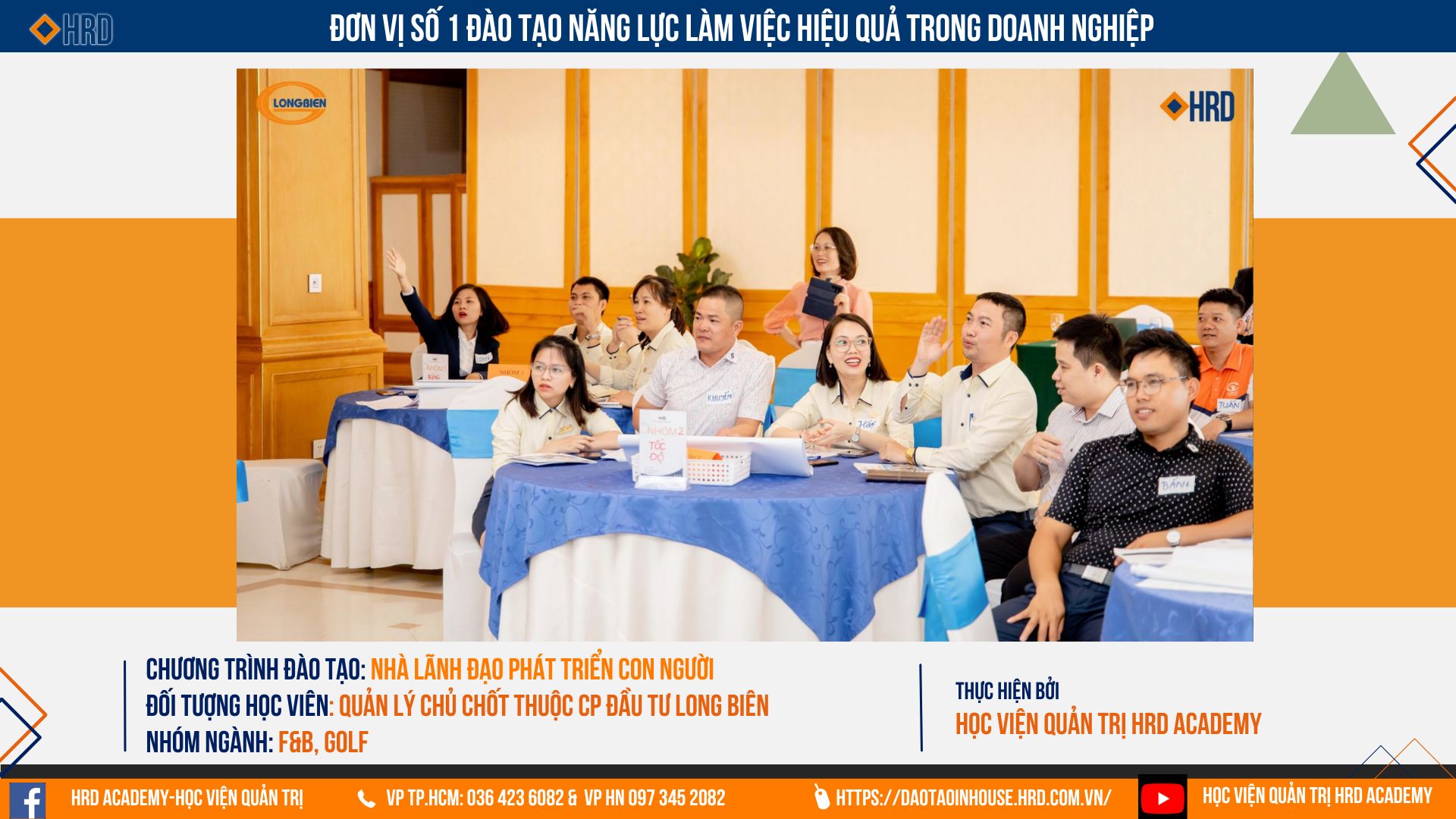 HRD luôn sẵn sàng đồng hành cùng các doanh nghiệp thiết kế, may đo các chương trình Đào tạo trong hành trình "Phát triển Năng lực đội ngũ" Hãy liên hệ ngay với Học viện Quản trị HRD Academy để nhận thêm thông tin.