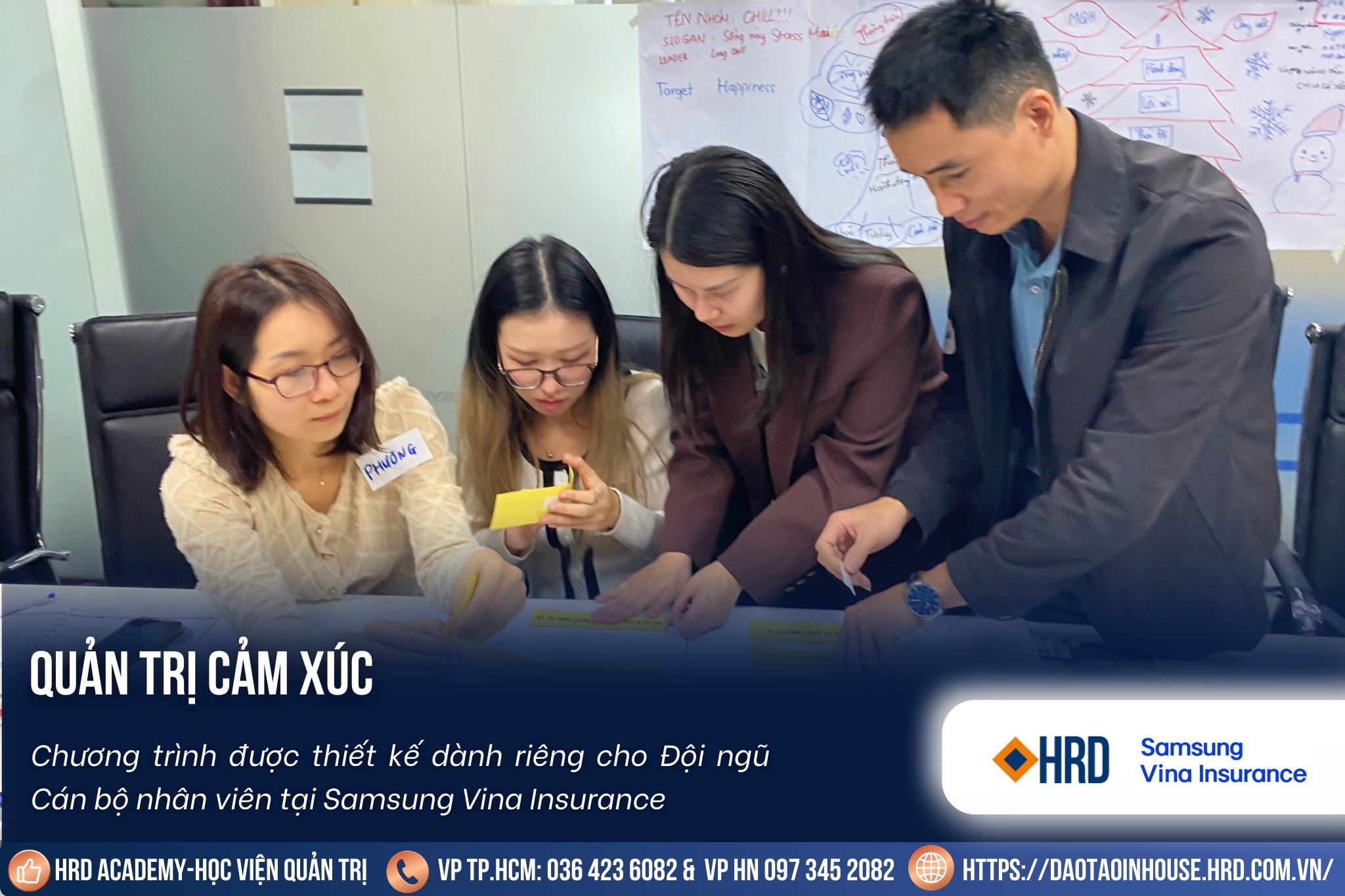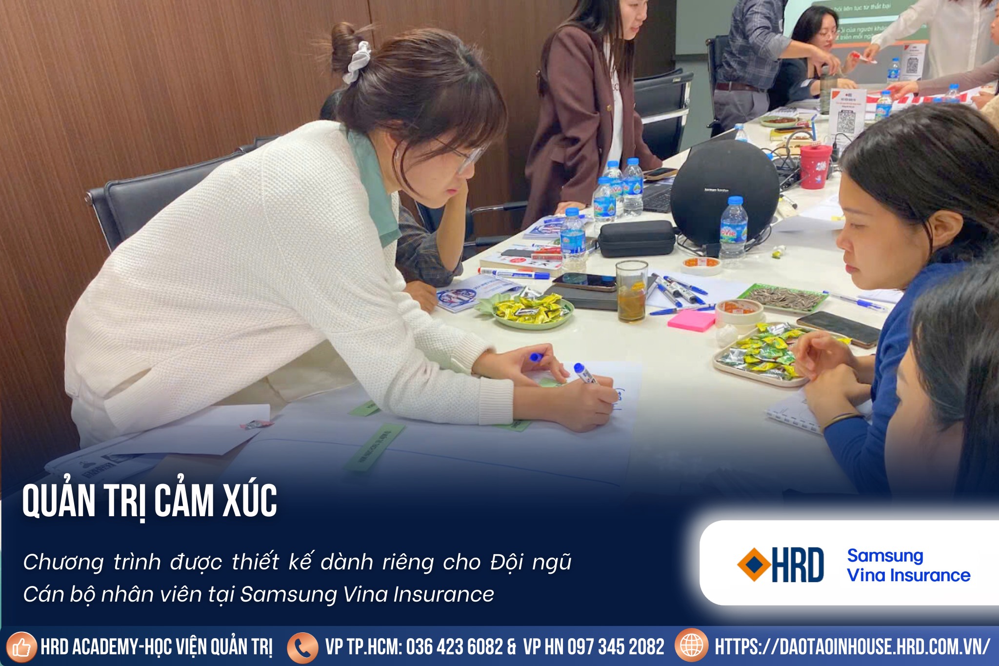 HRD Academy rất vinh dự đem đến cho Samsung Vina Insurance khóa học "Quản trị cảm xúc" nhằm giúp Quý Anh/Chị Học viên hiểu bản chất và vai trò của cảm xúc trong công việc tại SVI, rèn luyện kỹ năng kiểm soát cảm xúc và tự đánh giá khả năng quản trị cảm xúc, áp dụng kỹ năng này trong giao tiếp với cấp trên, đồng nghiệp và khách hàng tại SVI.