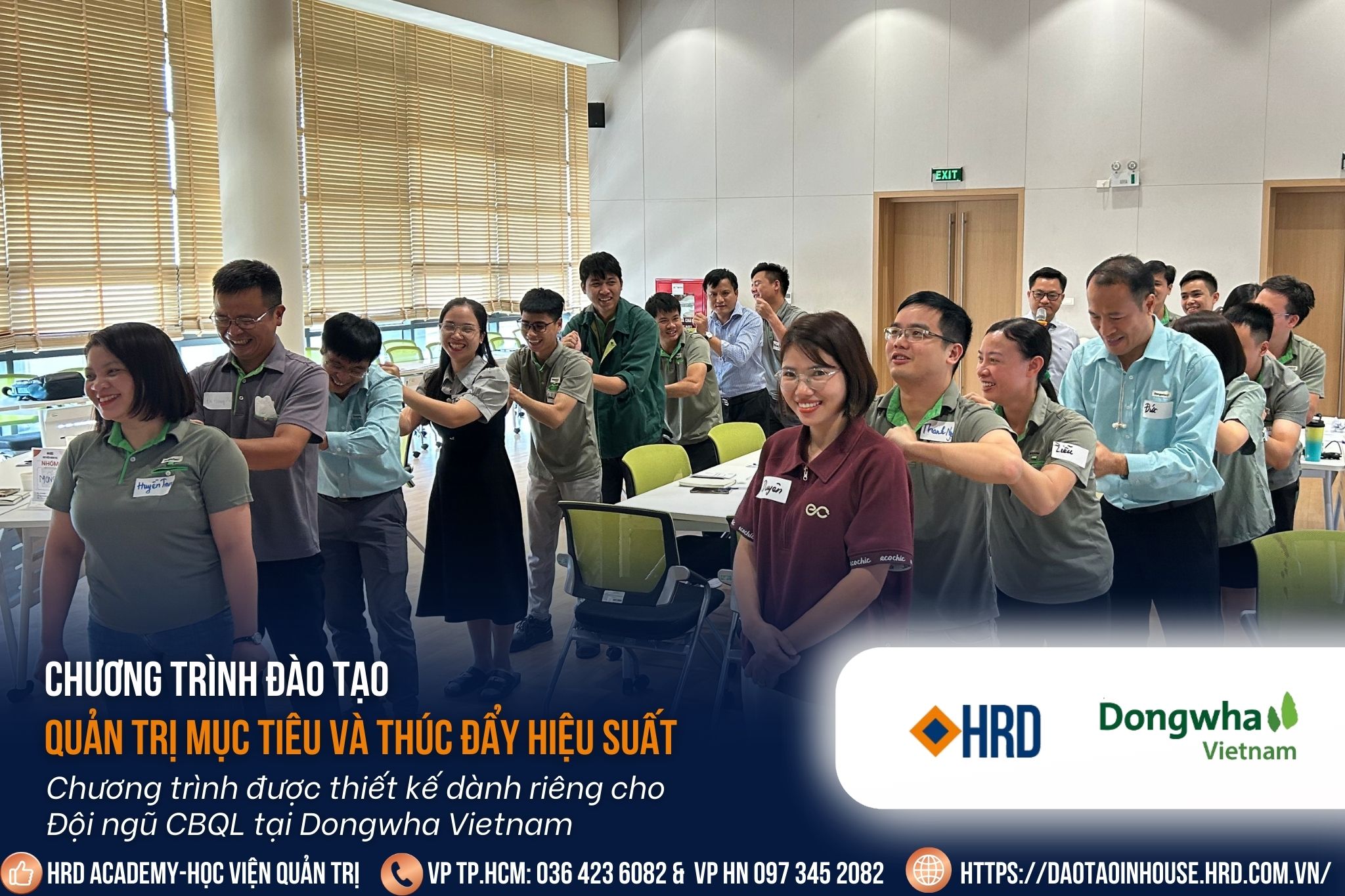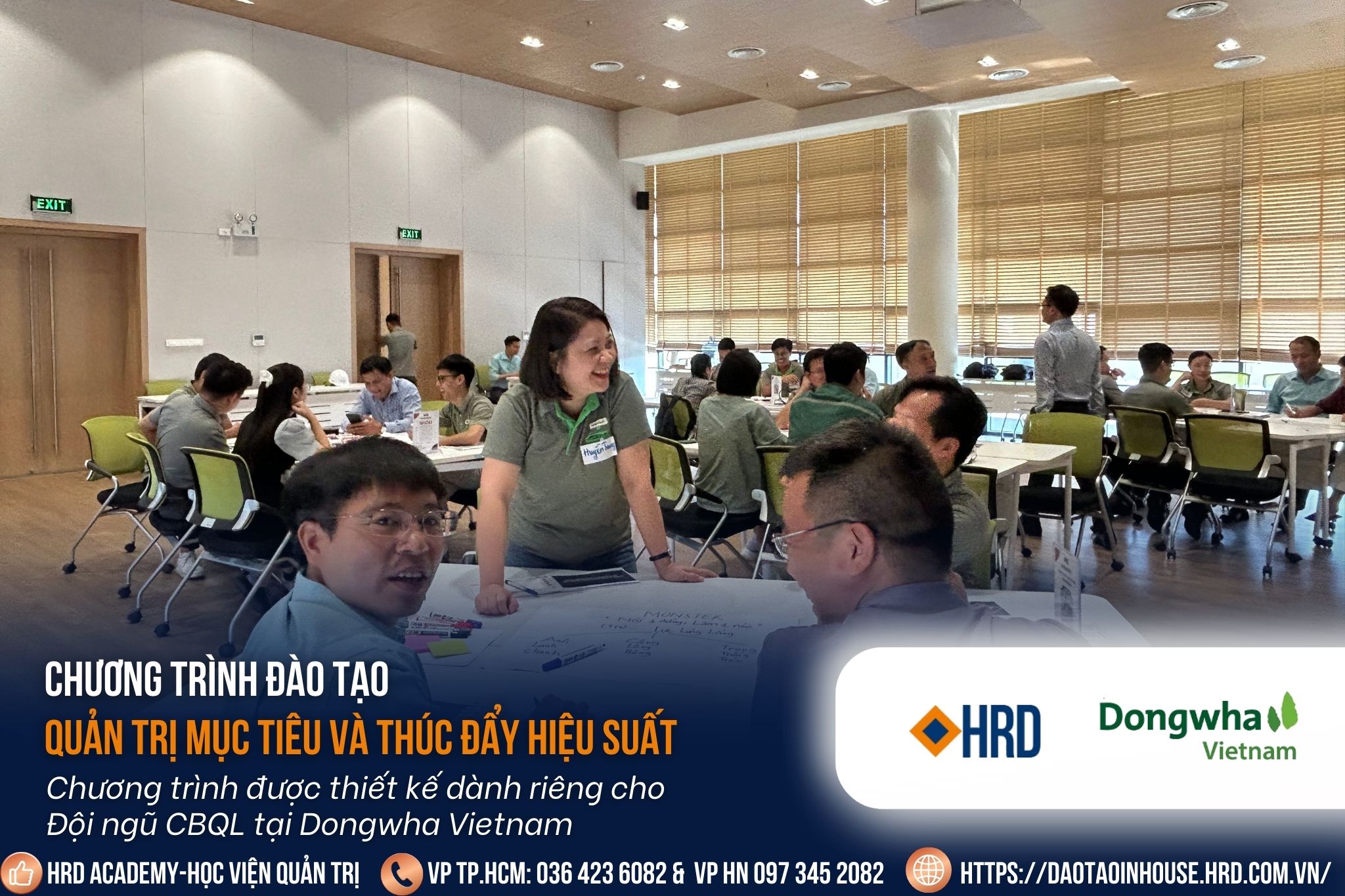 Dongwha Vietnam – doanh nghiệp hàng đầu trong lĩnh vực sản xuất vật liệu gỗ công nghiệp, luôn chú trọng vào hệ thống quản trị tiên tiến. Để hiện thực hóa mục tiêu phát triển bền vững, Dongwha đã phối hợp cùng HRD Academy tổ chức khóa huấn luyện chuyên sâu: “Quản trị mục tiêu và thúc đẩy hiệu suất” dành cho đội ngũ cán bộ quản lý.