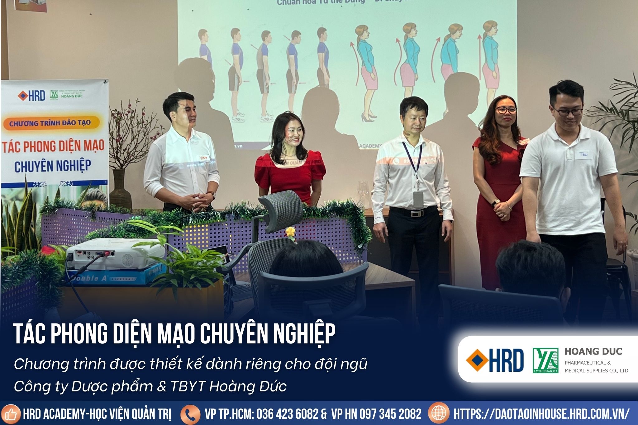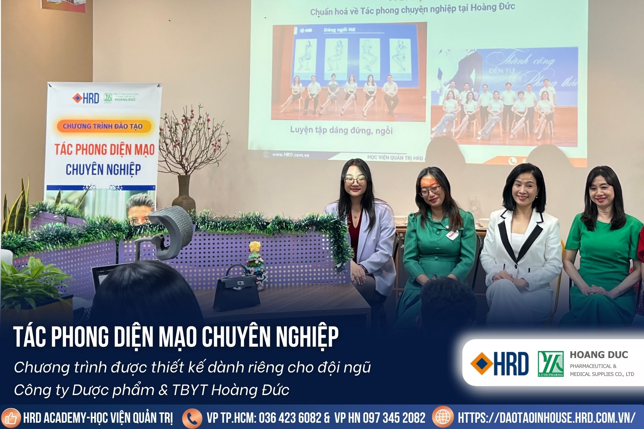 Trong môi trường Y tế, hình ảnh chuyên nghiệp của đội ngũ nhân sự không chỉ thể hiện qua năng lực chuyên môn mà còn được đánh giá qua phong thái, cách giao tiếp và sự chuẩn mực trong từng chi tiết. Với mục tiêu nâng cao chất lượng đội ngũ và khẳng định vị thế thương hiệu, Công ty Dược phẩm và trang thiết bị Y tế Hoàng Đức đã phối hợp cùng HRD Academy tổ chức chương trình đào tạo “Tác phong diện mạo chuyên nghiệp” dành cho đội ngũ cán bộ nhân viên.