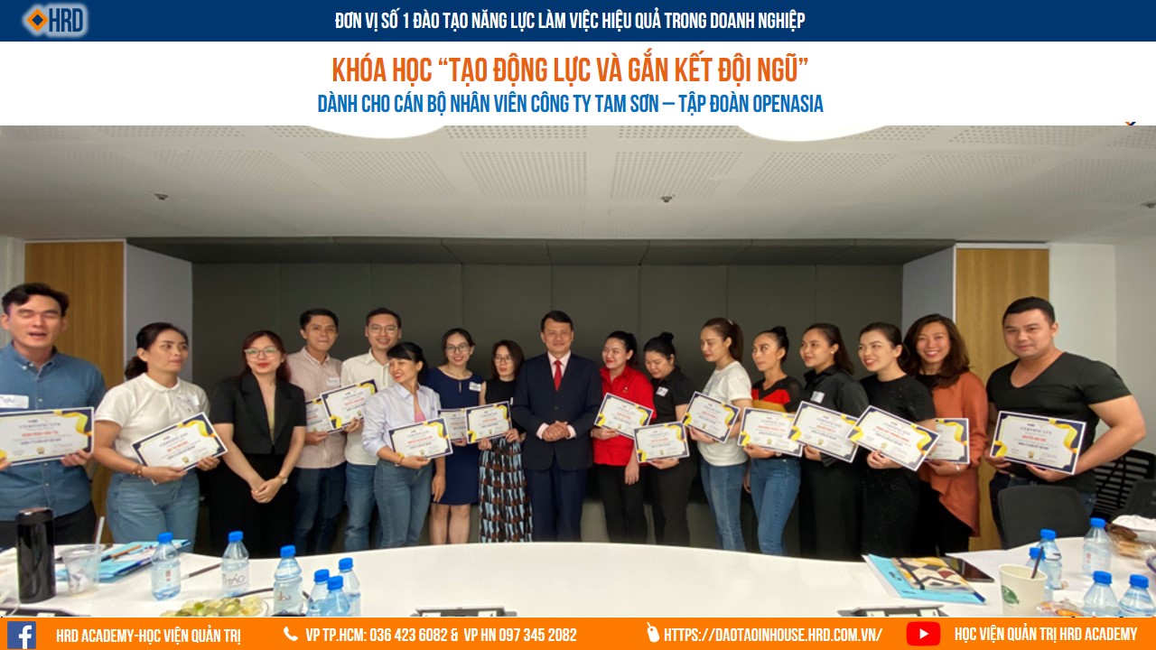 HỌC VIỆN QUẢN TRỊ HRD ACADEMY HÂN HẠNH ĐƯỢC TIẾP TỤC ĐỒNG HÀNH CÙNG CÔNG TY TAM SƠN - TẬP ĐOÀN OPENASIA TRONG CHƯƠNG TRÌNH "KỸ NĂNG TẠO ĐỘNG LỰC VÀ GẮN KẾT ĐỘI NGŨ"