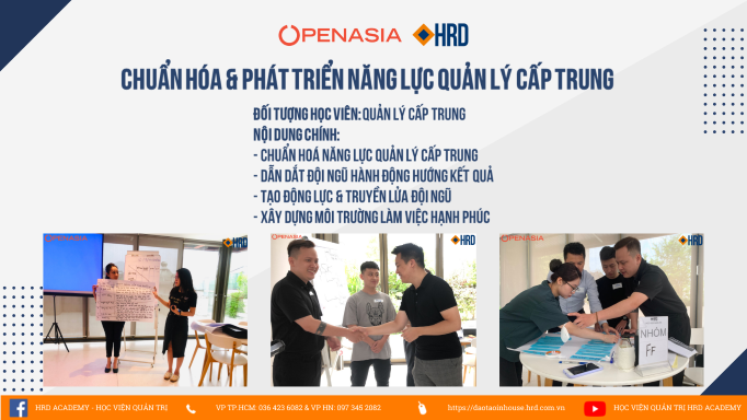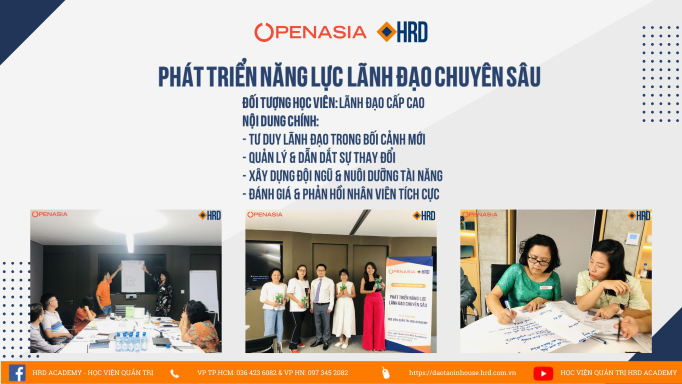 Tập đoàn Openasia với mục tiêu tăng trưởng nhanh & bền vững cũng như mong muốn của Ban lãnh đạo trong việc xây dựng văn hoá học tập & môi trường làm việc tích cực đang đầu tư mạnh mẽ trong việc chuẩn hoá & phát triển năng lực đội ngũ chủ chốt. Học viện Quản trị HRD Academy đã đồng hành cùng Tập đoàn Openasia xây dựng Dự án Phát triển năng lực đội ngũ 2022 với sự đầu tư mạnh mẽ từ Ban lãnh đạo Tập đoàn.