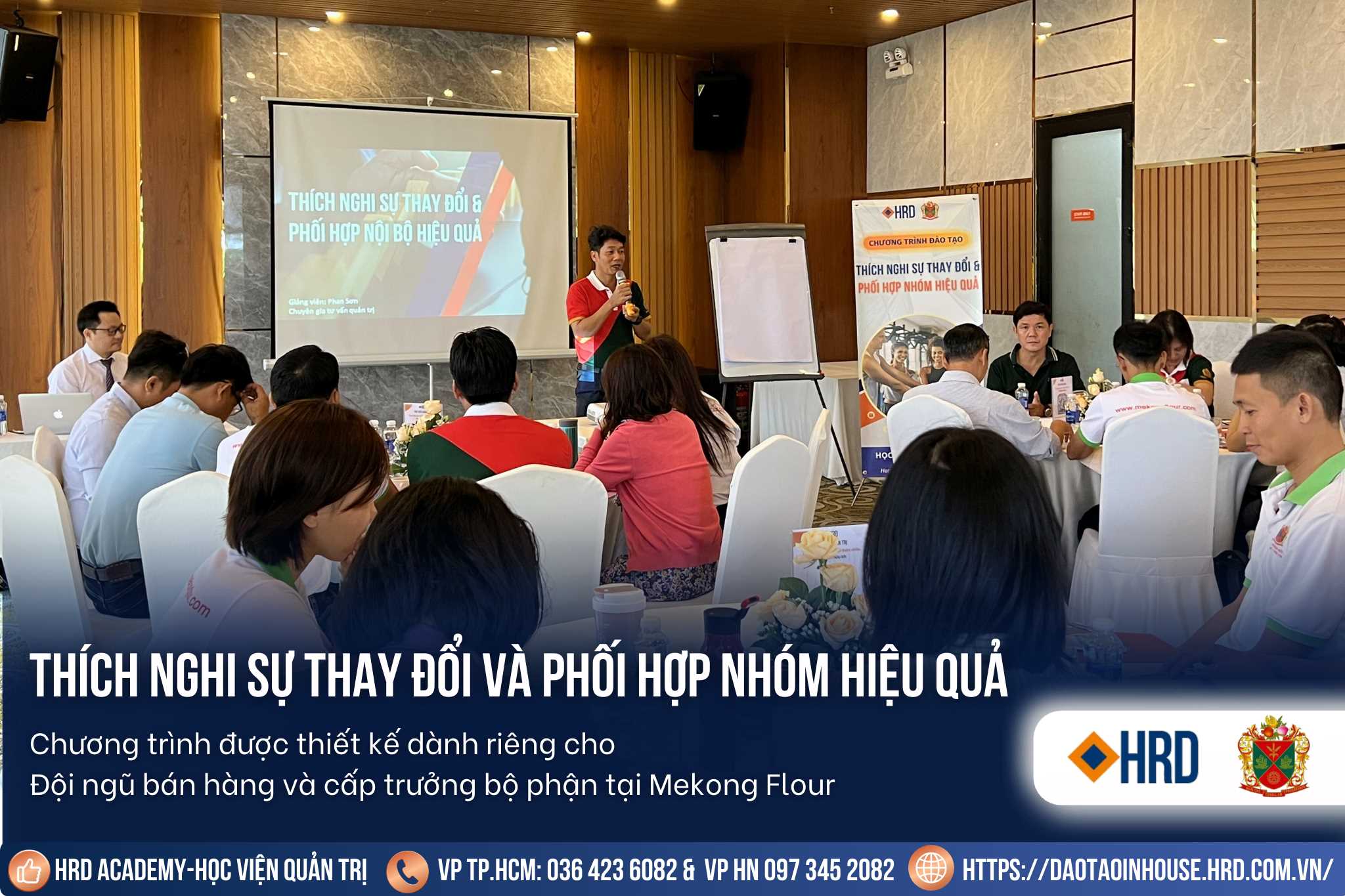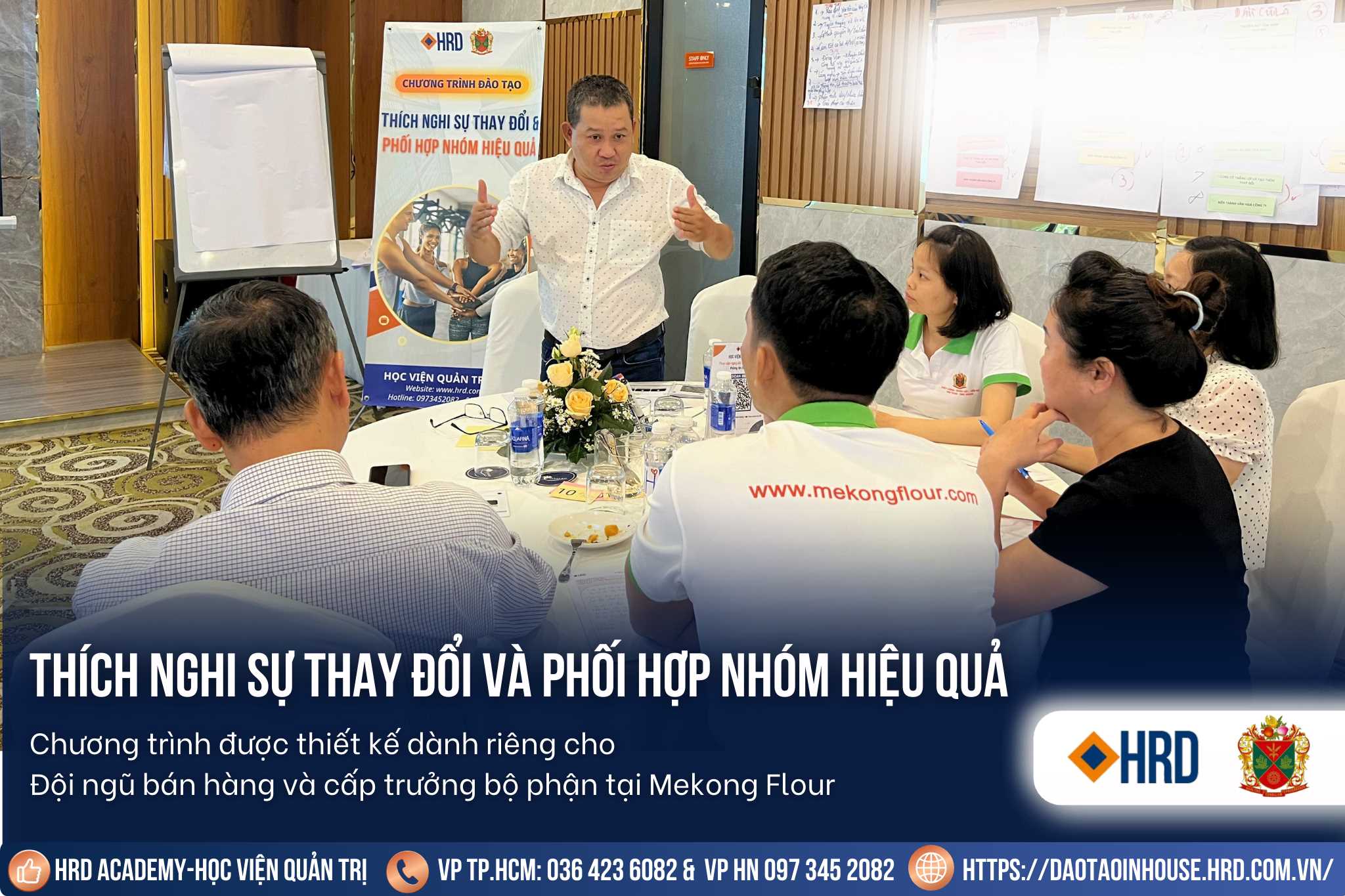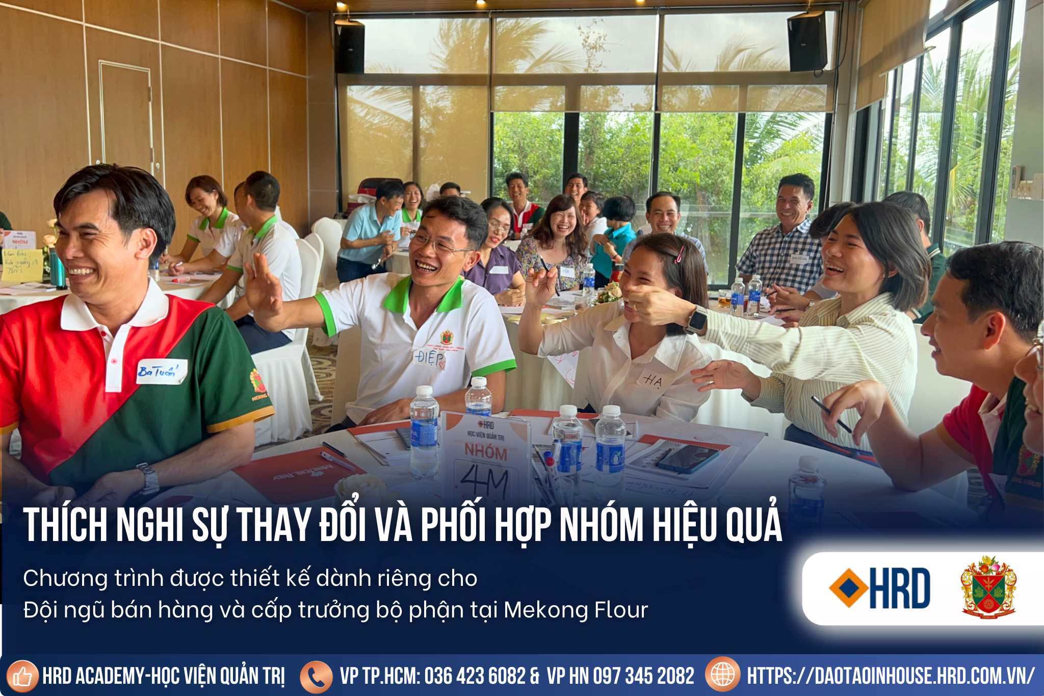 Sự thay đổi là một điều đang diễn ra thường xuyên liên tục trên thị trường hiện nay. Doanh nghiệp nào càng thích nghi nhanh, càng dễ dàng nắm được cơ hội. Ngay cả trong nội bộ doanh nghiệp, sự thay đổi cũng là một yếu tối tất yếu và cần thiết, điều quan trọng là đội ngũ nhân sự cần nhanh chóng thích nghi, chuyển mình và phát triển, tạo nên sự phối hợp hài hòa trong đội ngũ, tạo nên mối liên kết vững mạnh trong tổ chức. Nhận thấy được tầm quan trọng đó, Mekong Flour đã phối hợp cùng HRD Academy tổ chức chương trình đào tạo “Thích nghi sự thay đổi và phối hợp nhóm hiệu quả”.