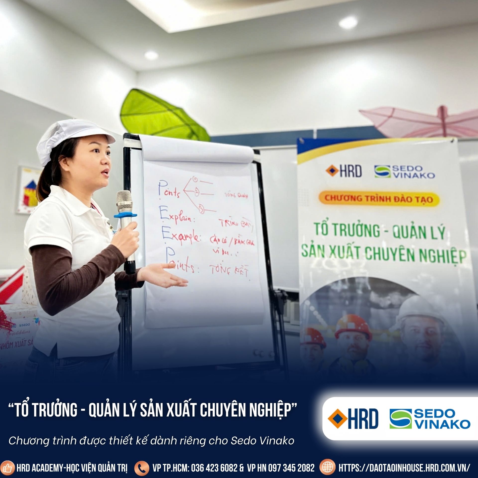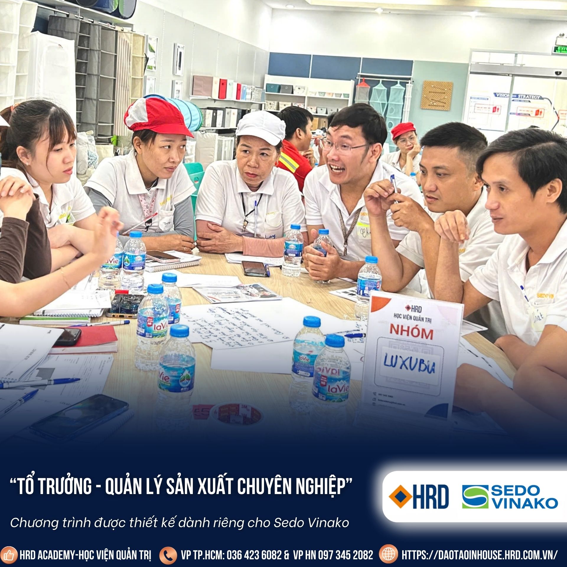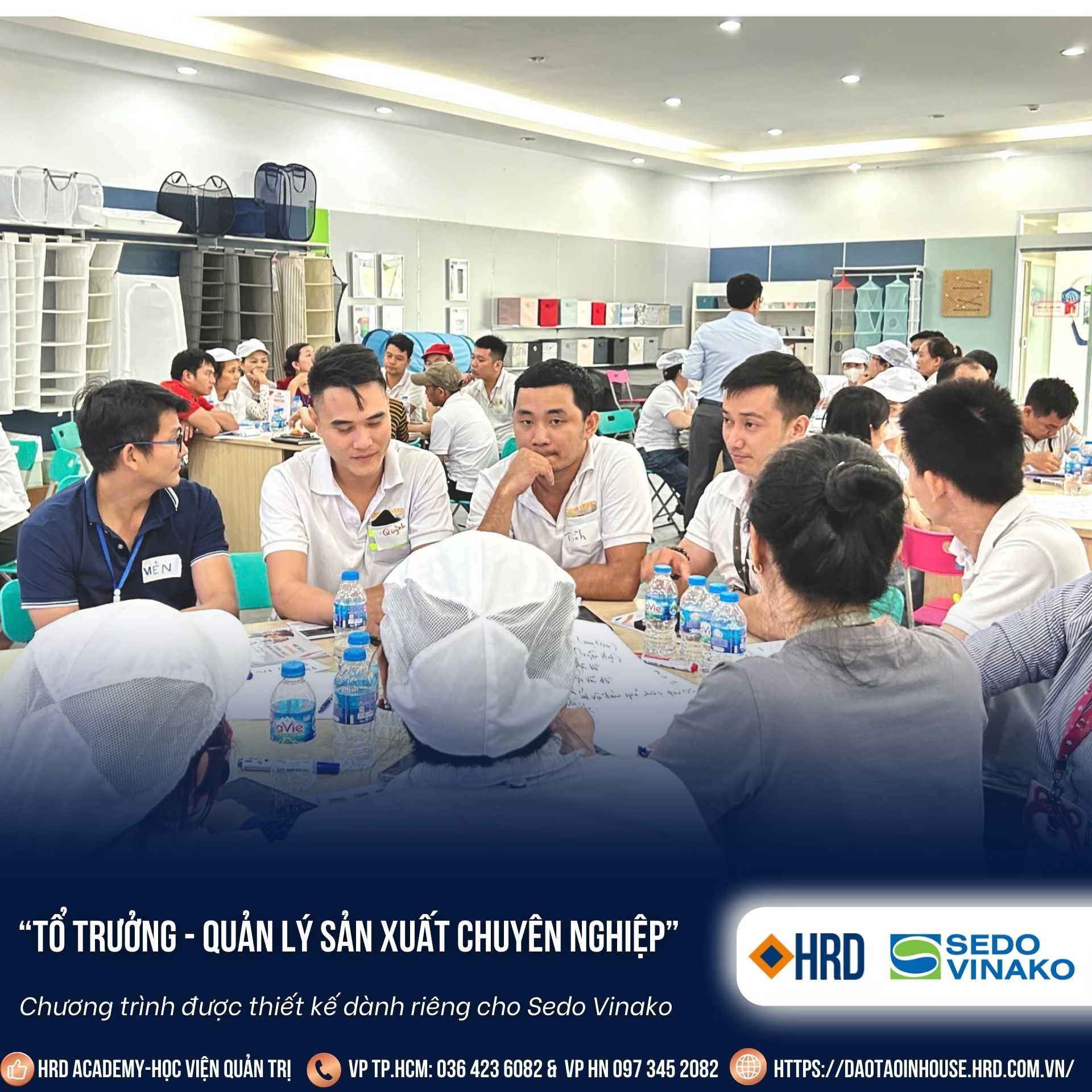 Hiểu rõ tầm quan trọng đó, SEDO VINAKO – doanh nghiệp hoạt động trong lĩnh vực may mặc xuất khẩu, đã hợp tác cùng HRD Academy tổ chức chương trình đào tạo chuyên sâu “Tổ trưởng – Quản lý sản xuất chuyên nghiệp” cho đội ngũ quản lý tại nhà máy.