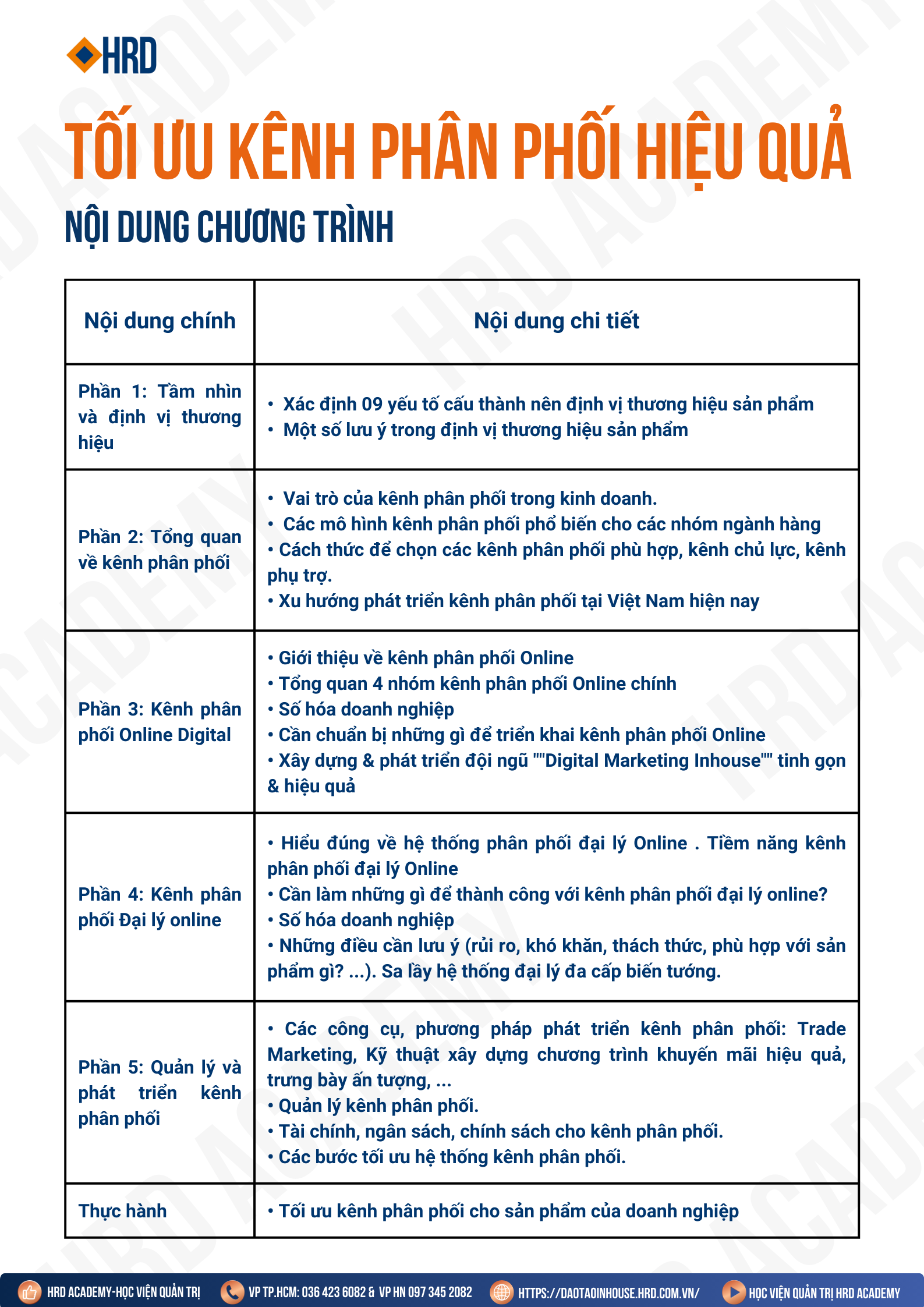 2. Tham khảo khung chương trình Tối ưu kênh phân phối hiệu quả tại Học viện Quản trị HRD Academy
