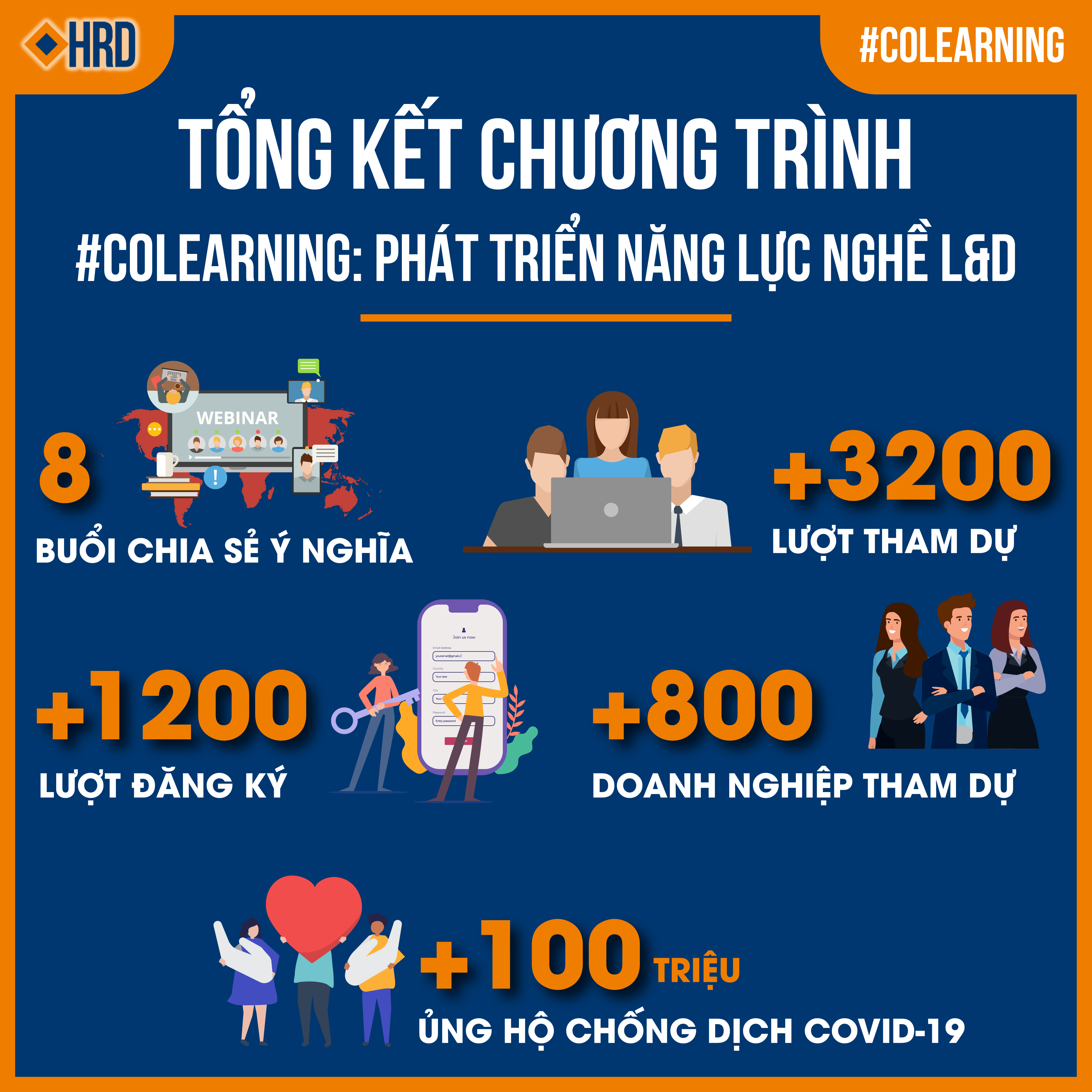 Chương trình CoLearning được Học viện Quản trị HRD Academy khởi xướng với mục tiêu hỗ trợ cộng đồng L&D cùng nhau chia sẻ kiến thức, kinh nghiệm, phát triển bản thân & sẵn sàng cho những cơ hội phía trước. Đồng thời, chương trình cũng là dịp để cộng đồng L&D thể hiện trách nhiệm xã hội trong việc chung tay cùng Chính phủ, Bộ Y tế & Toàn dân bằng việc toàn bộ quỹ quyên góp sẽ chuyển về Quỹ ủng hộ Bộ Y tế chống dịch Covid-19.