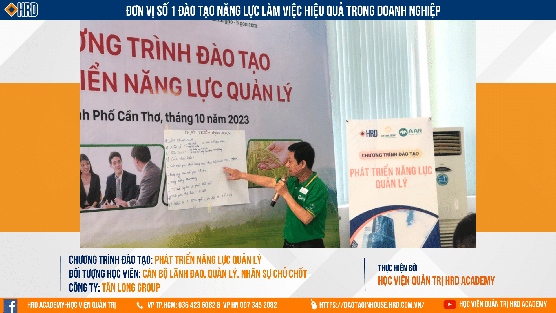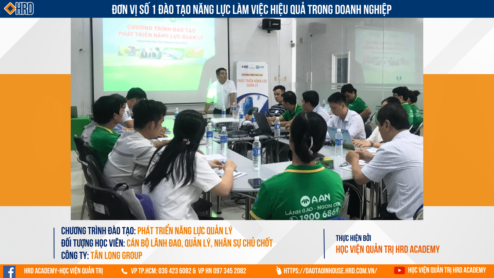 Dưới đây là tổng quan nội dung chương trình đào tạo: "Phát triển năng lực Quản lý" được tổ chức bởi Học viên Quản trị HRD Academy dành cho Đội ngũ Cán bộ lãnh đạo, Cán bộ Quản lý khối Cung ứng Sản xuất Gạo Tân Long Group