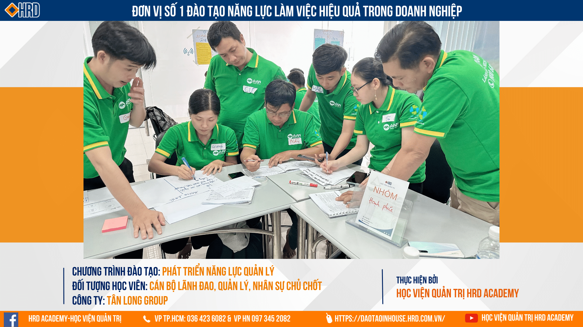Cảm ơn quý đối tác đã tin tưởng lựa chọn HRD Academy để cùng đồng hành trong quá trình Đào tạo & Phát triển năng lực tổ chức! Chúc cho các Anh/chị Cán bộ Quản lý, Lãnh đạo sẽ đạt được những thành tựu lớn và dẫn dắt Tân Long Group phát triển vững bền.