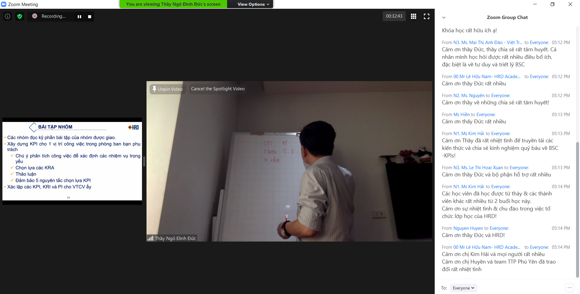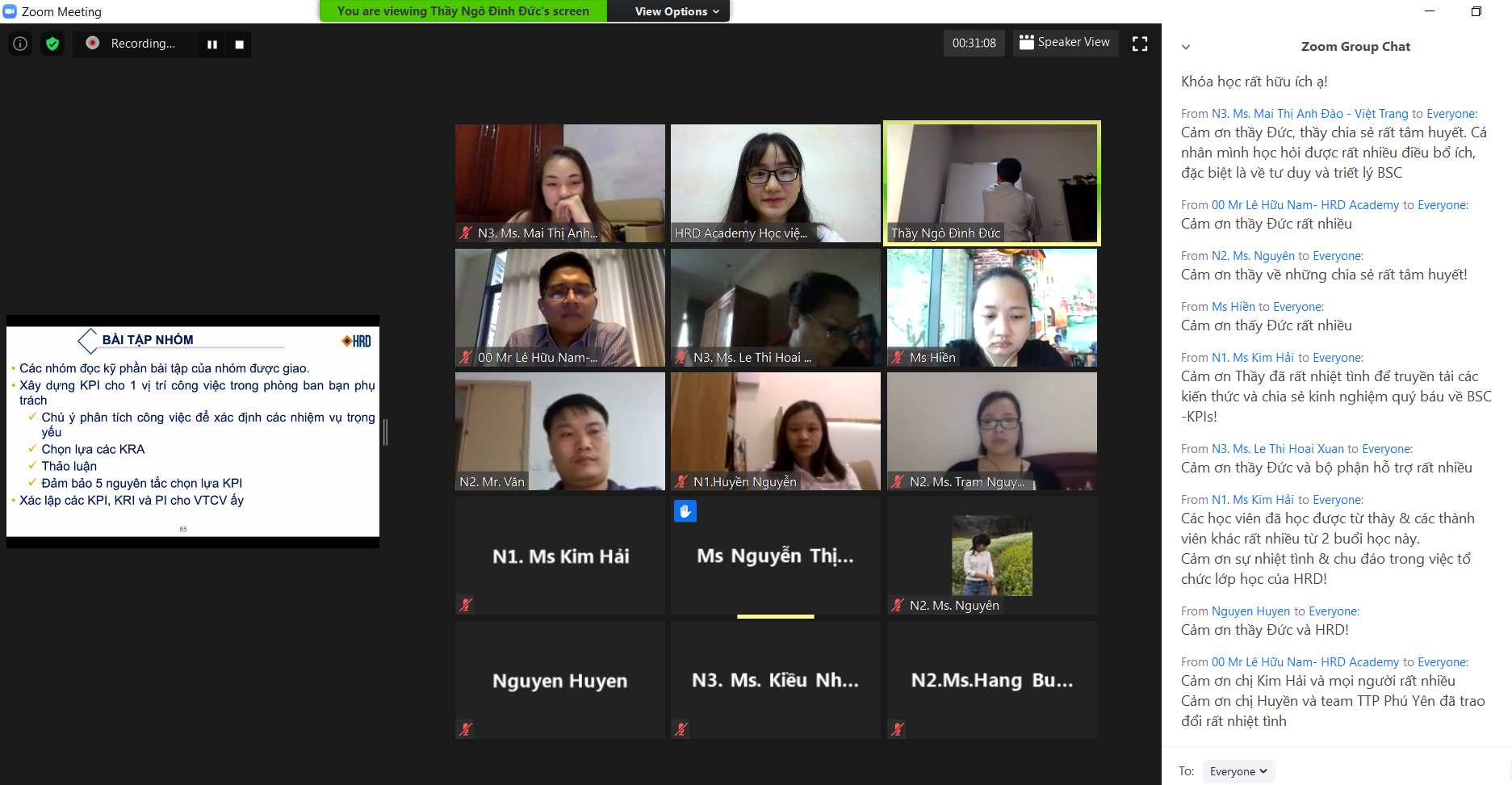 Chia sẻ sau khóa học, chị Kim Hải - Giám đốc Tài chính đến từ TTP Phú Yên chia sẻ: “Cảm ơn Thầy Ngô Đình Đức đã nhiệt tình chia sẻ các kiến thức và kinh nghiệm quý báu trong việc triển khai BSC-KPIs. Chương trình đã mang đến những nội dung vô cùng thực tiễn, gỡ rối được nhiều vấn đề trong quá trình xây dựng và triển khai BSC-KPIs tại các đơn vị. Cảm ơn HRD đã rất nhiệt tình, chu đáo và chuyên nghiệp trong quá trình tổ chức lớp học và hỗ trợ kỹ thuật cho các học viên".