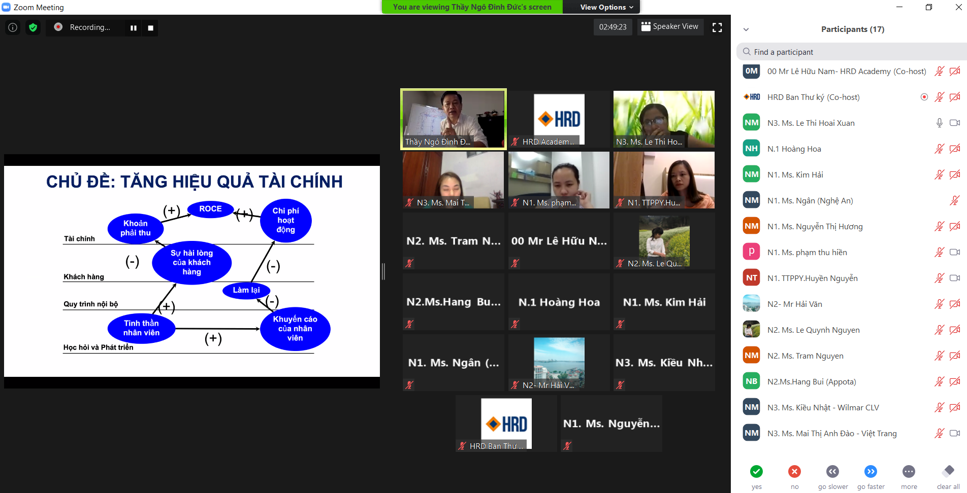 Khóa Huấn luyện livelearning "Thực thi xuất sắc chiến lược trong thời kỳ mới" do Học viện Quản trị HRD Academy tổ chức đã quy tụ nhiều CEO, quản lý đến từ nhiều doanh nghiệp khác nhau, đa dạng về quy mô và lĩnh vực hoạt động.