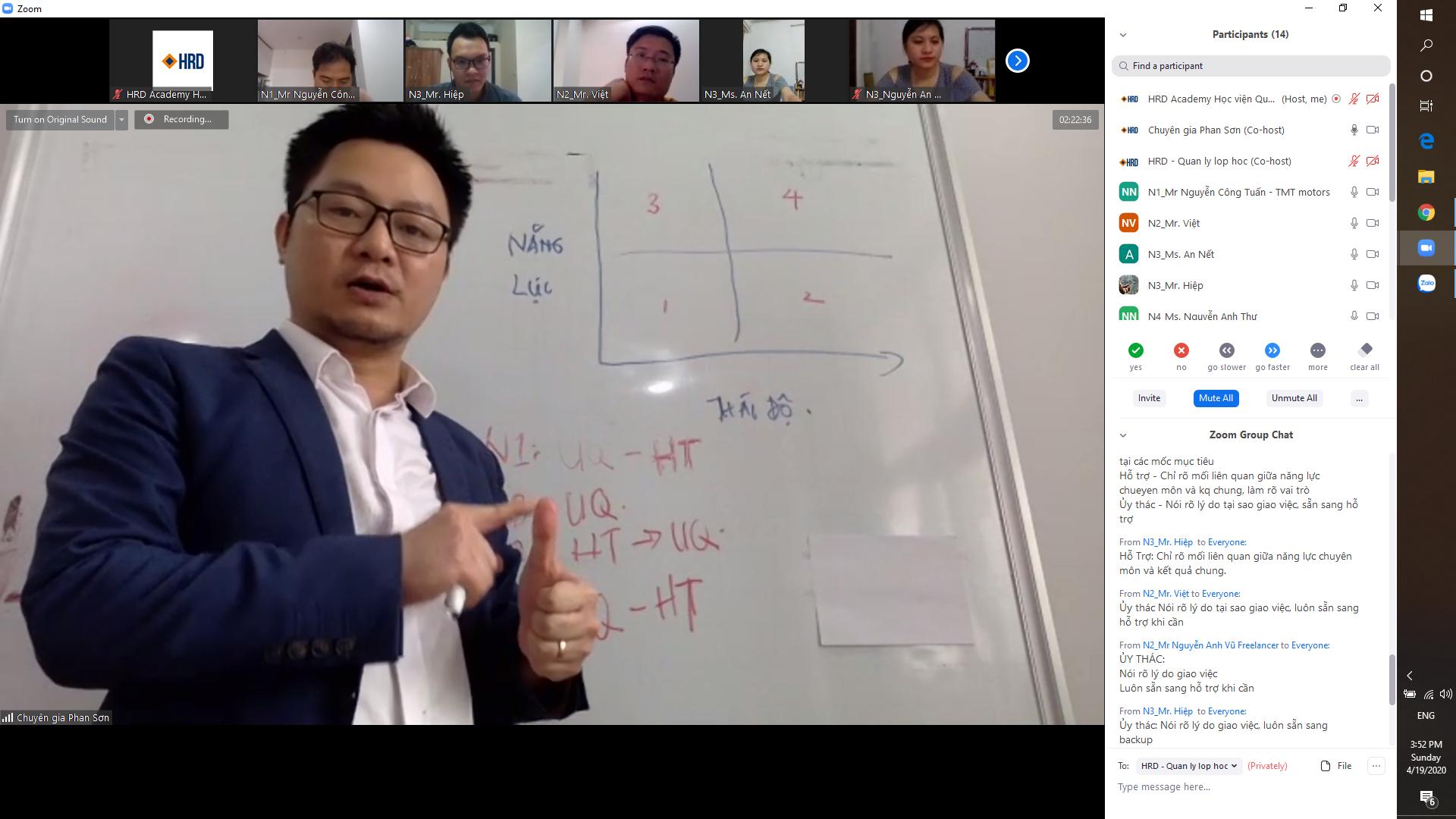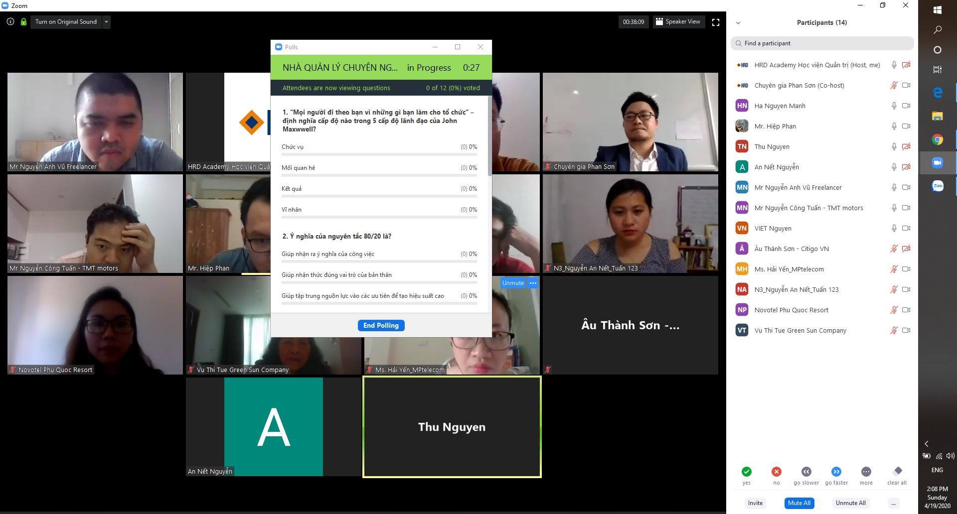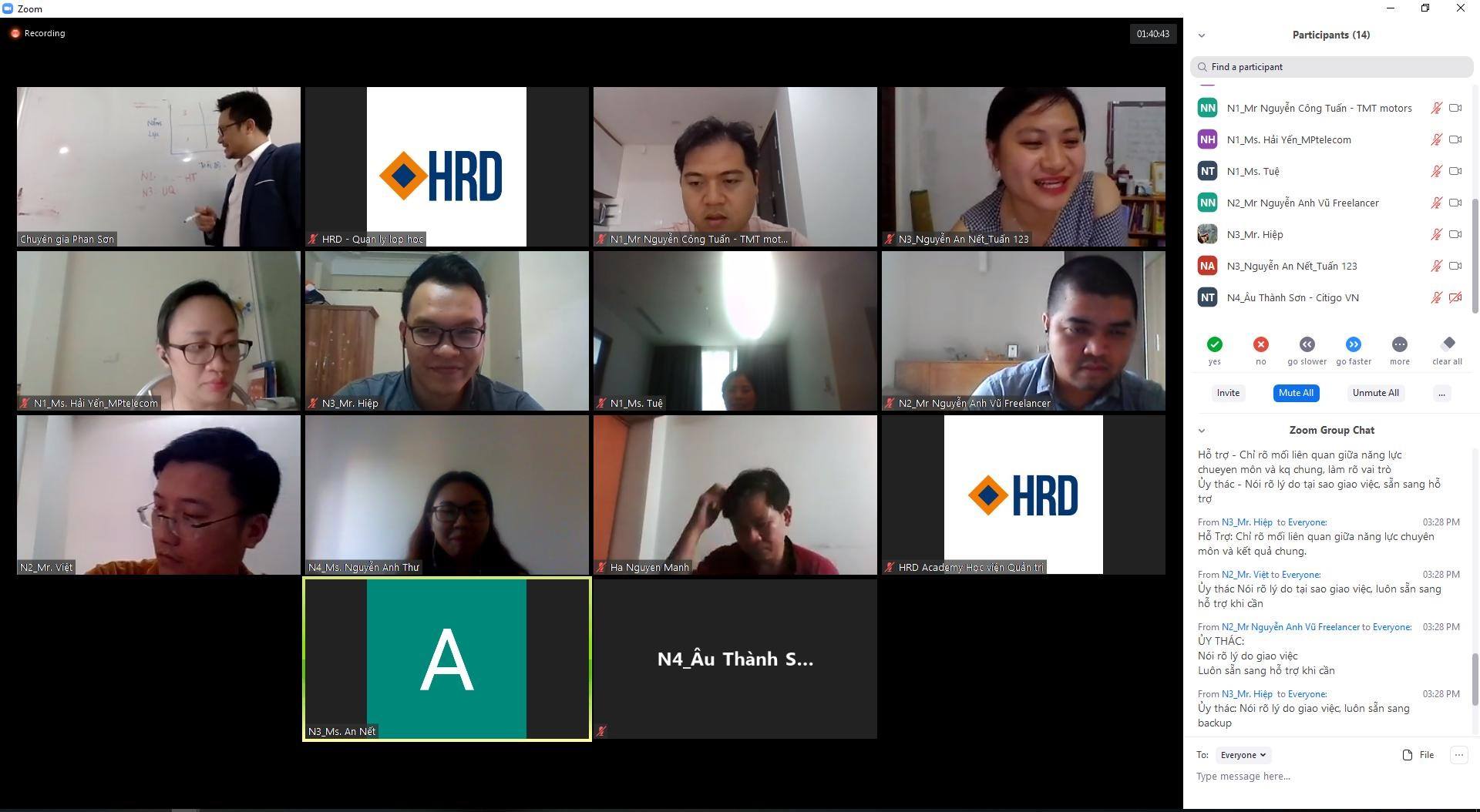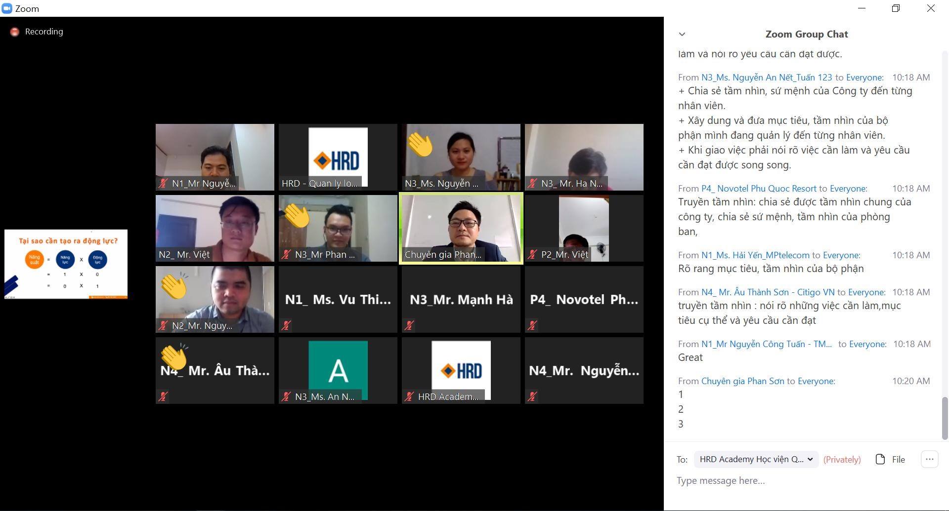 Khóa Huấn luyện trực tuyến “Nhà quản lý chuyên nghiệp” do Học viện Quản trị HRD Academy tổ chức đã diễn ra thành công với sự tham gia của nhiều quản lý đến từ nhiều doanh nghiệp khác nhau trên mọi miền đất nước, đa dạng về quy mô và lĩnh vực hoạt động.
